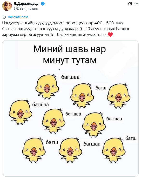 14. Өөрийнхөө нэрийг “Багш“ гэж бодтол өдөрт хэдэн зуун удаа энэ үгийг сонсдог.