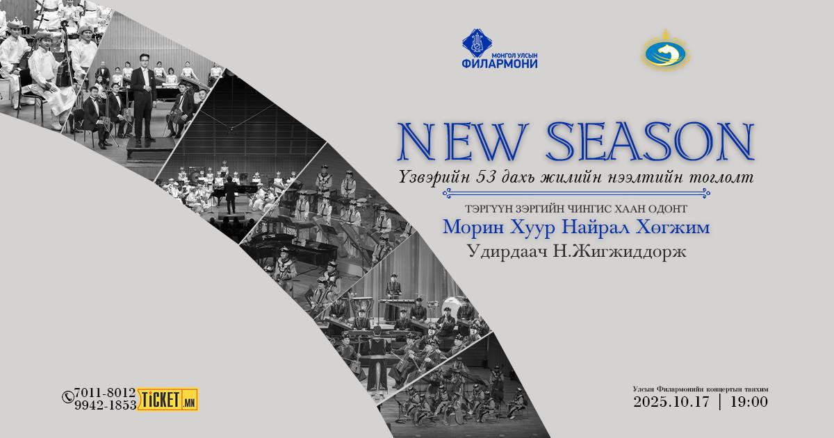 Монгол Улсын Филармонийн үзвэрийн 53 дахь жилийн нээлтийн “NEW SEASON 2026” тоглолтоор Монголын үе үеийн хөгжмийн зохиолчдын бүтээлүүд эгшиглэнэ
