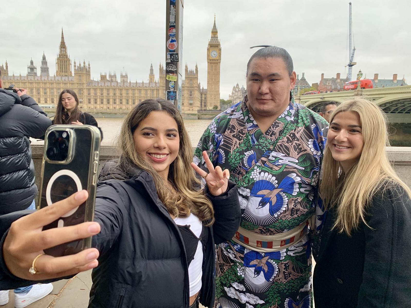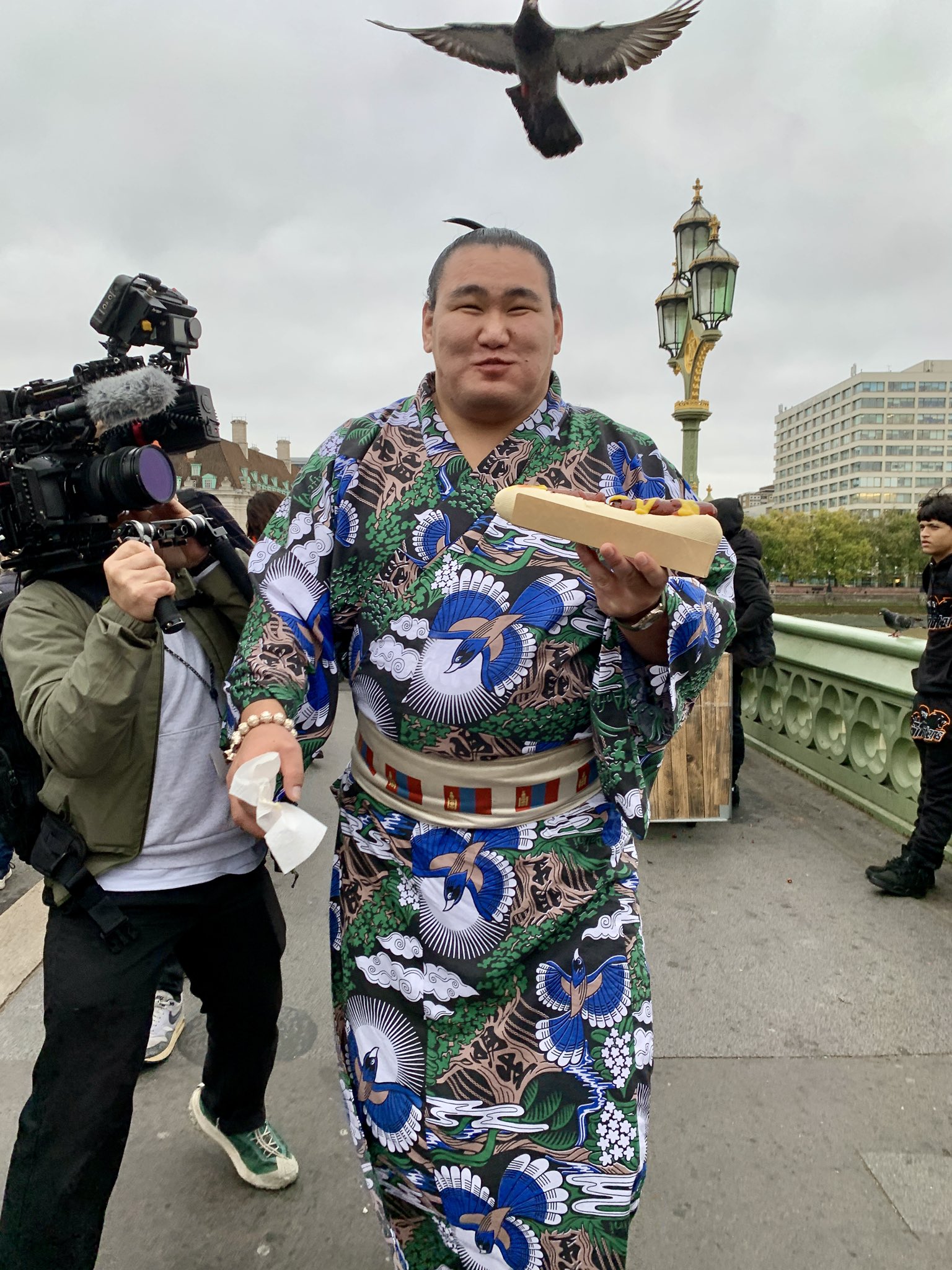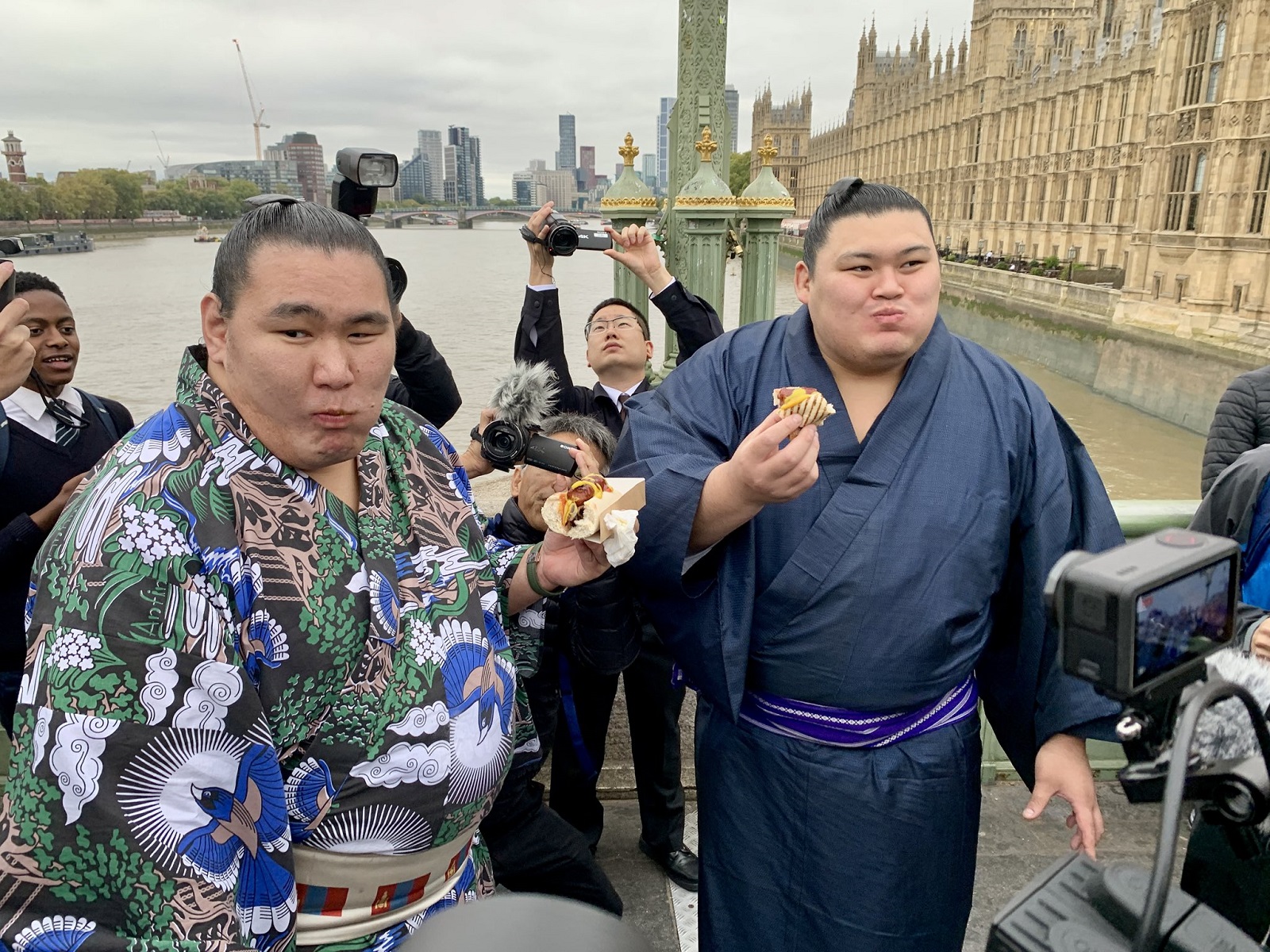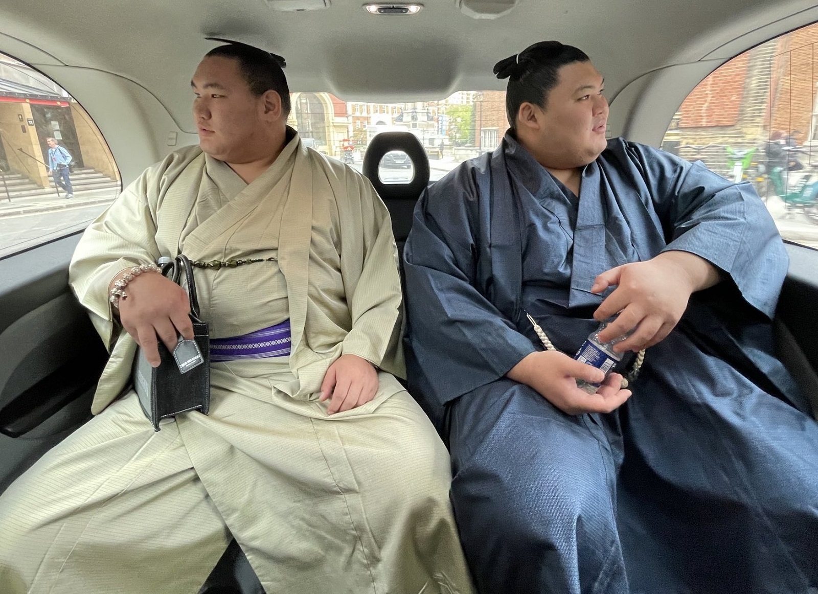 Лондон хотын гудамжаар асар том биетэй, кимонотой, магэ үстэй бөхчүүд зугаалж явах нь харагдах болж, англичууд гайхан, хамт зураг авхуулдаг болоод байна.