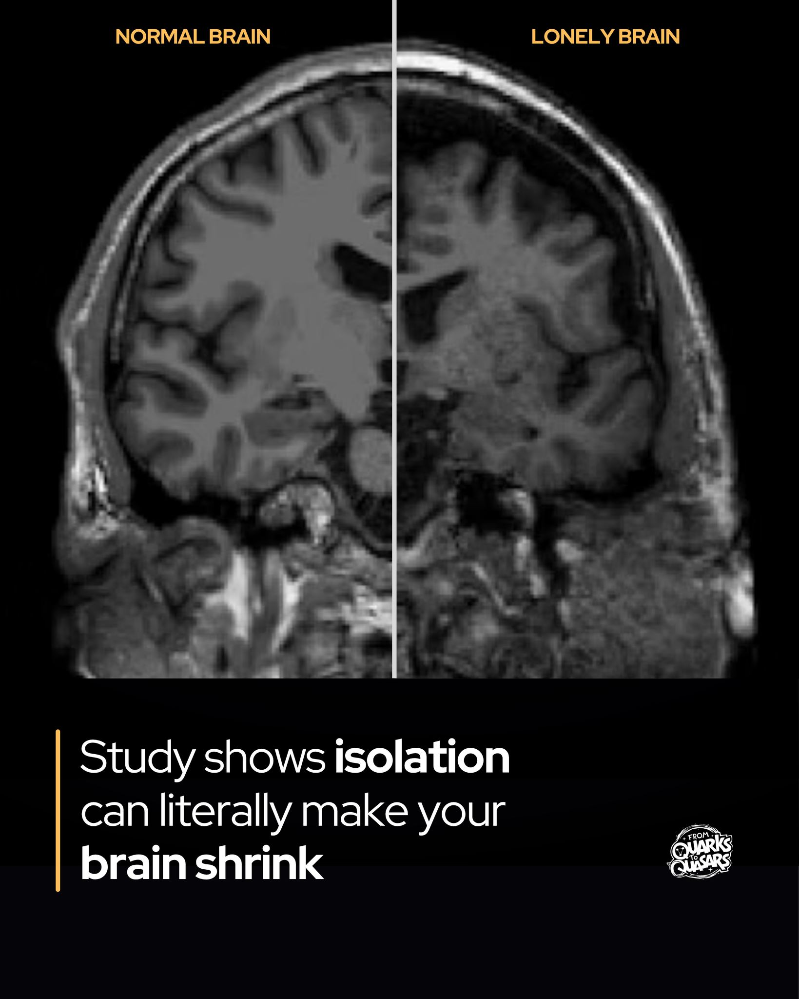 Японы эрдэмтдийн баг 65-аас дээш насны 9,000 орчим хүнийг хамруулсан томоохон судалгаанд оролцогчдын тархины дүрс бичлэгийг шинжилжээ. Нийгмийн харилцаа багатай хүмүүсийн тархины эзэлхүүн мэдэгдэхүйц бага, ялангуяа ой санамж, сэтгэл хөдлөлийг хариуцдаг гиппокамп ба амигдала хэсэгт агшилт илэрснийг тогтоосон байна. Мөн цусны эргэлтийн тогтолцооны гажиг, танин мэдэхүйн чадамж буурах зэрэгт нөлөөлдөг цагаан бодисын гэмтэл (white matter lesion) ихээр ажиглагджээ.