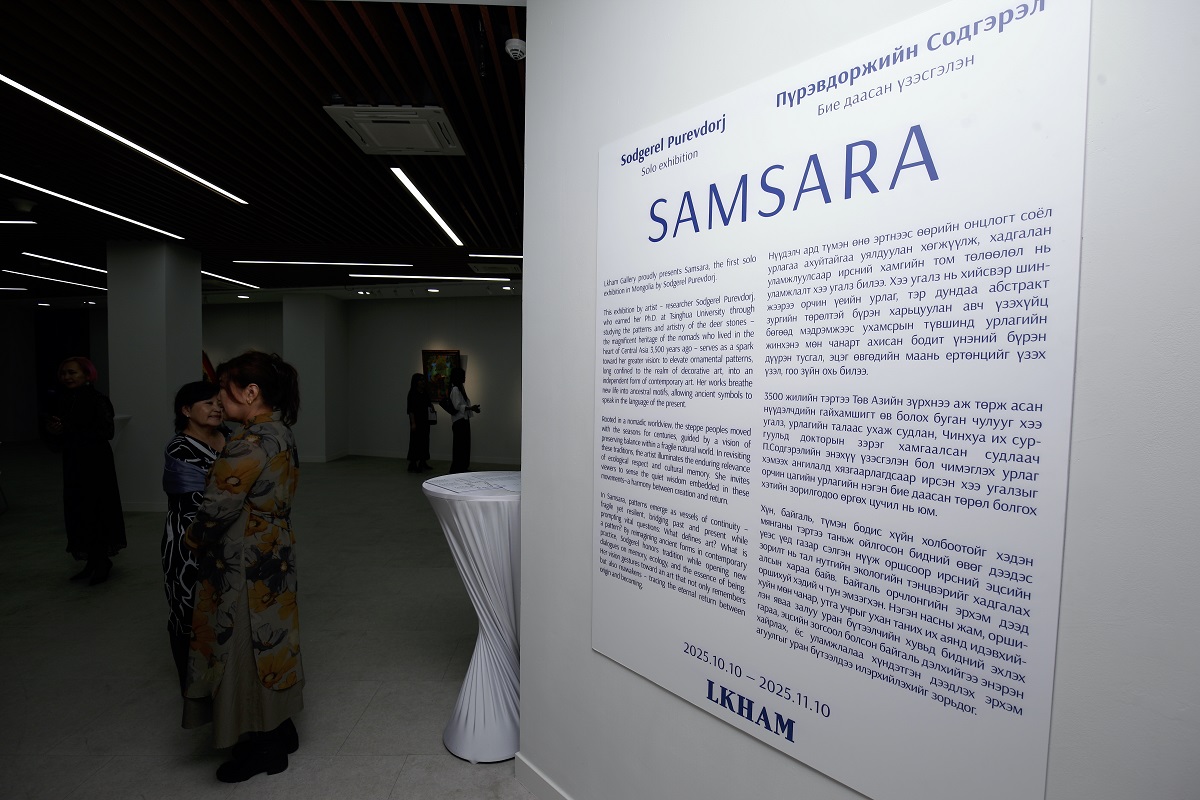 Лхам Галерейн ээлжит үзэсгэлэн болох Самсара нь Чинхуа их сургуулийн доктор, хээ угалз судлаач, уран бүтээлч П.Содгэрэлийн Монгол дахь анхны бие даасан үзэсгэлэн юм. Энэхүү үзэсгэлэнгээрээ дамжуулан Содгэрэл нь олон зууны турш хадгалагдан ирсэн нүүдэлчдийн өв соёлын бэлэг тэмдэг болох хээ угалзыг орчин үеийн урлагт хувирган дүрсэлсэн бүтээлүүдээ толилуулж байгаа болно.