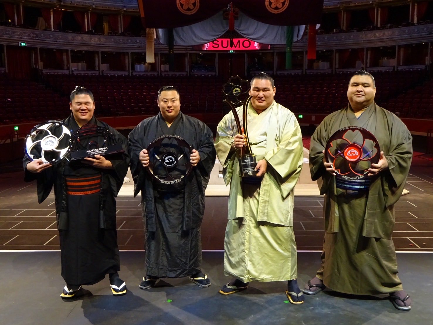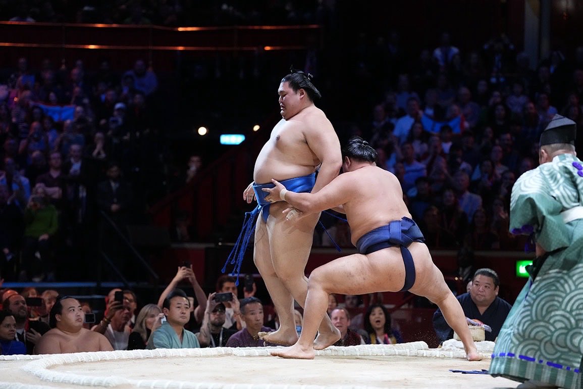 Тэгш ойгоороо ийнхүү англи бөхийн хорхойтнуудтай уулзаж, сүмо бөхөө танилцууллаа. Лондон хотын “Royal Albert Hall”-д явагдсан тус аялан тоглолт үзэгчдийн санаанд тун их нийцсэн. Тав хоног гудамжаар аварга биет сүмо бөхчүүд алхаж, бөх сонирхогчид тэдэнд өөрсдөө хоч, нэр хайрлан үзэж суулаа.