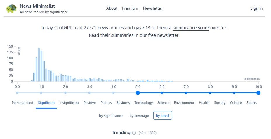 “News Minimalist” гэх newsletter-ийн хэрэглэгч болоод удаагүй байна. Эднийх AI-ийн тусламжтайгаар дэлхийн түгээмэл 12 хэлнээс, өдөрт 30,000 мэдээг шүүж, чухлын дарааллаар 1-10 оноо хүртэл өгдөг. Эдгээрээс 5,5+ дээш оноотой, хамгийн чухал, хэрэгтэй гэсэн мэдээллүүдийг сонгон имэйлээр хэрэглэгчид рүүгээ илгээдэг юм. Гуравхан сая гаруй хүн амтай улсынхаа хэрэг явдлыг гүйцэхгүй шахам байхад дэлхий нийтэд болж буй мэдээ мэдээллийг цаг алдалгүй, чухлын дарааллаар мэдэж байна гэдэг түвэгтэй ажил шүү дээ.