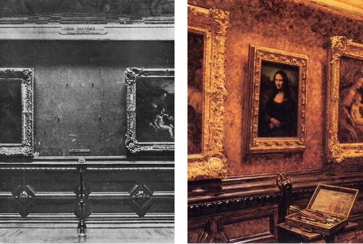1911 оны наймдугаар сарын 21-ний өдрийн өглөөг Лувр музей хамгийн алдартай үзмэргүйгээр угтлаа. Өглөө ирсэн музейн Мона Лиза зураг өлгөөтэй байсан хана хоосон байхыг ажиглажээ. Эхлээд гэрэл зураг авахаар буулгасан байх гэж бодож байсан ч удалгүй хулгай болох нь мэдэгдлээ. Дараа нь мэдэгдсэнээр Италийн мужаан Винченцо Перужа энэ хэргийг үйлдсэн байлаа. Луврт ажиллаж байсан тэрээр барилгыг маш сайн мэддэг хүн байв. Орой нь агуулахад нуугдаад өглөө хүнгүй байхад зургийг аваад, арын хаалгаар тайван гараад яван байна. Бүтэн хоёр жил алдарт Мона Лизаг хаана байгааг мэдэхгүй, хайсаар байлаа. Пабло Пикассо ч сэжиглэгдэж байсан гэдэг.