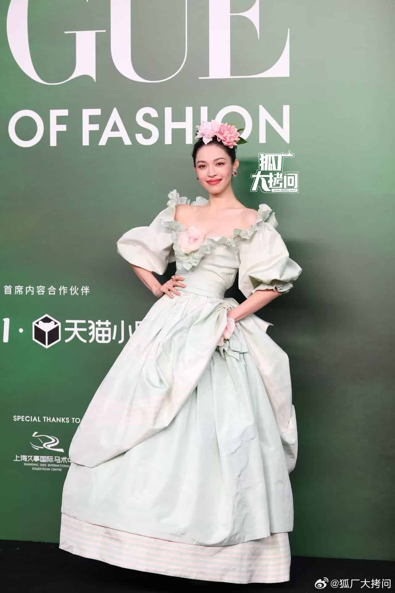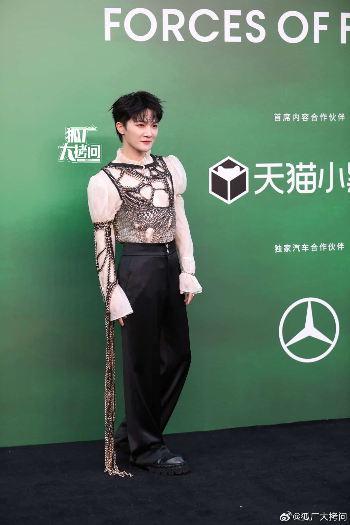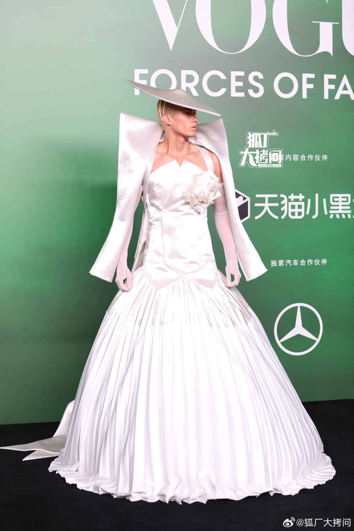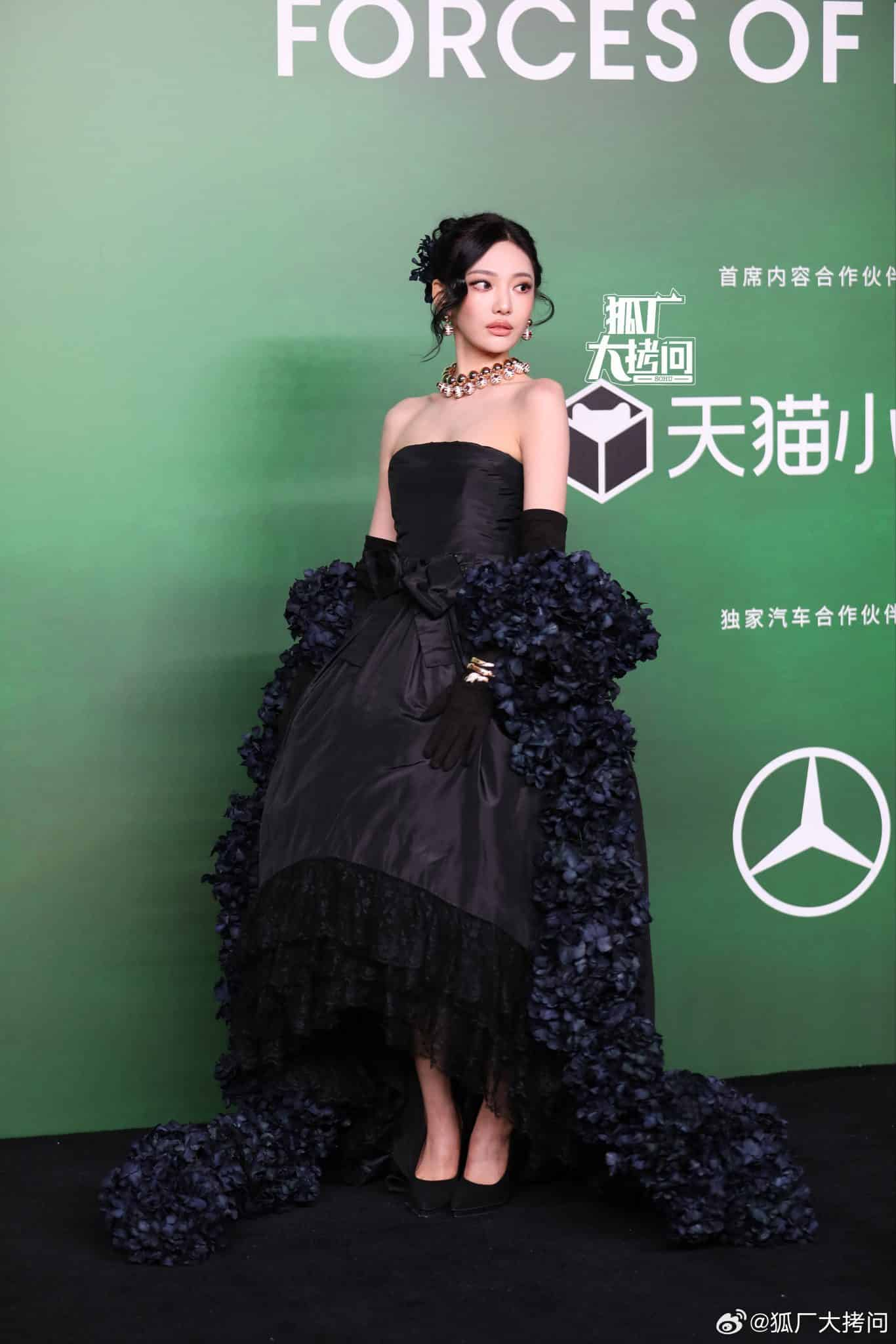 Шинжаан Уйгарын жүжигчин Гулиначжа Их Британийн загварын брэнд Richard Quinn өмсөж, TASAKI-гийн гоёлтой ирсэн байв.