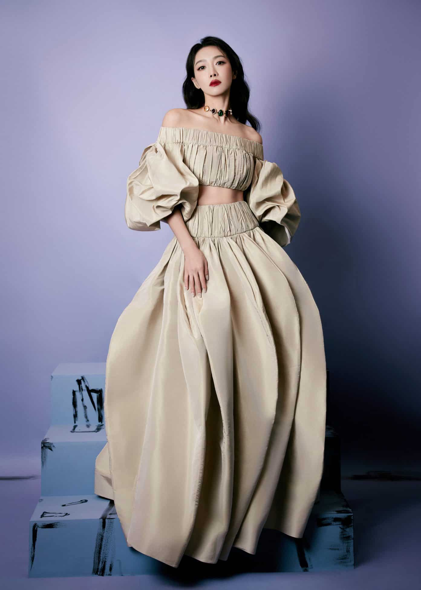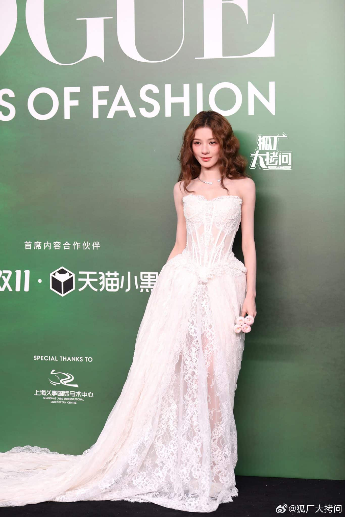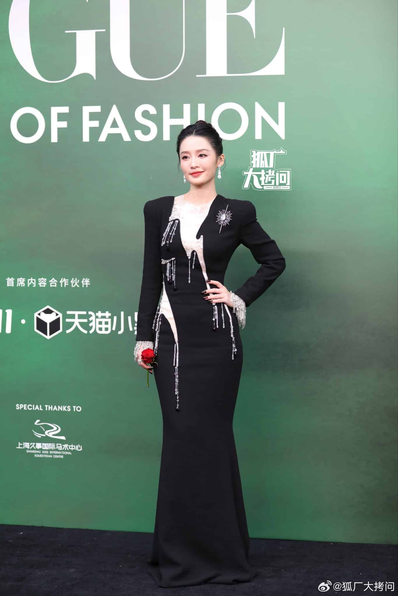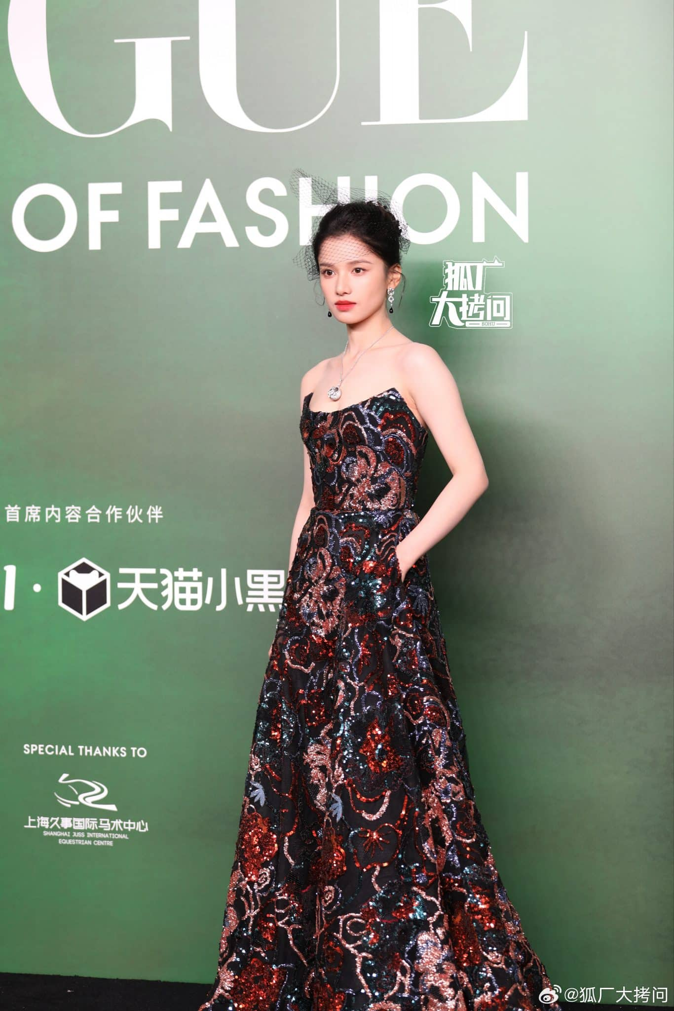 Шинжаан Уйгарын жүжигчин Гулиначжа Их Британийн загварын брэнд Richard Quinn өмсөж, TASAKI-гийн гоёлтой ирсэн байв.
