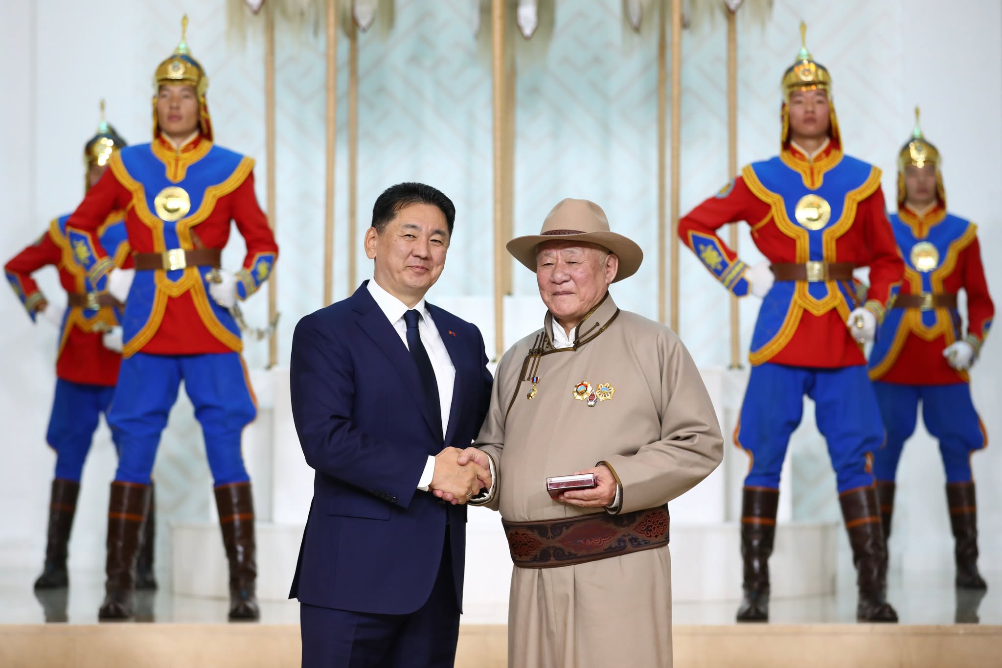 Монгол Улсын Ерөнхийлөгч У.Хүрэлсүх төрийн дээд цол, одон, медаль хүртсэн эрхмүүдэд болон гэр бүл, хамт олонд нь баяр хүргэж, сайн сайхан бүхнийг хүсэн ерөөлөө.