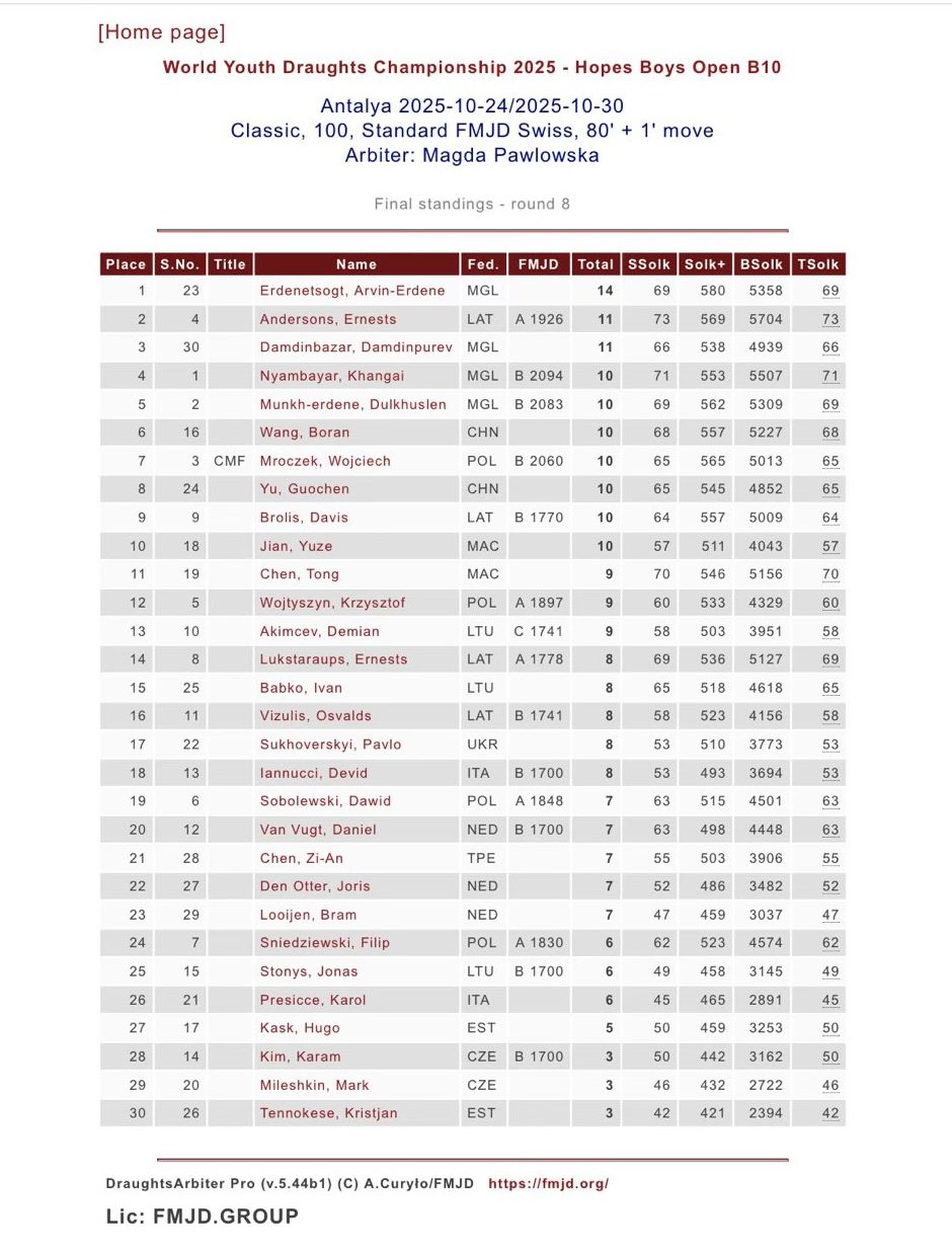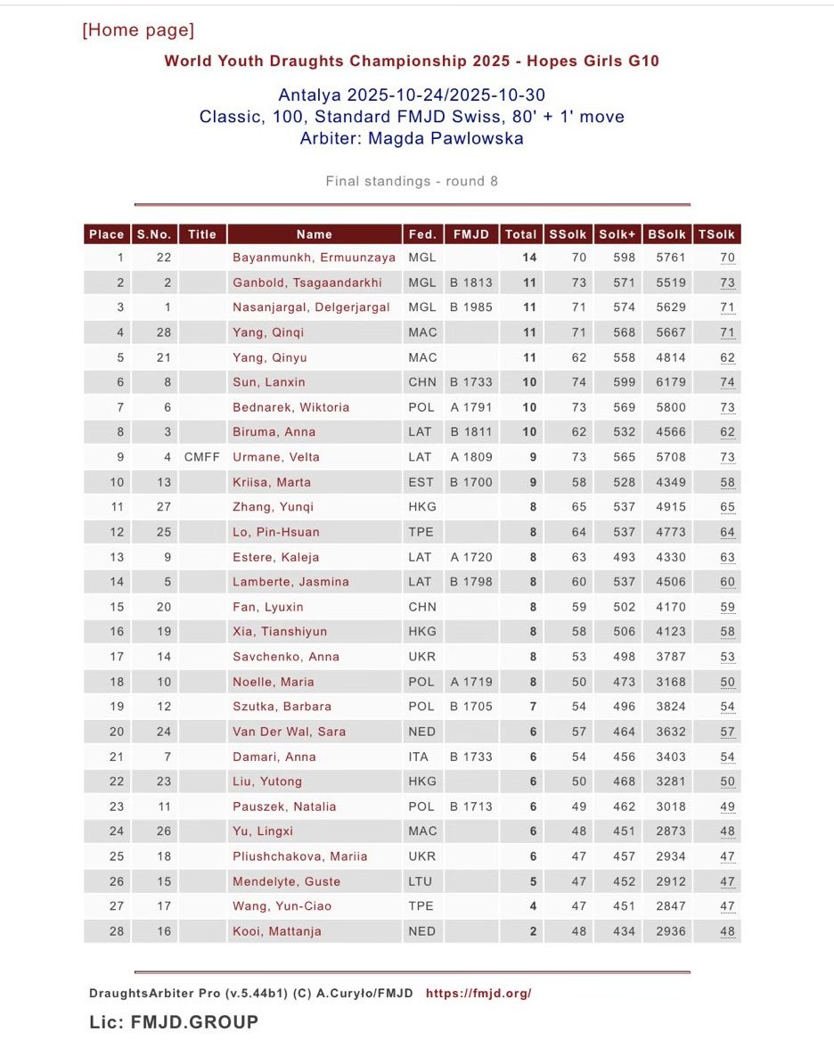 Тодруулбал, хөвгүүдийн 9-10 насны ангилалд "Ирээдүй" даамын академийн тамирчин СМ Эрдэнэцогтын Арвин-Эрдэнэ, мөн насны охидын ангилалд Архангай аймаг, "Даам Месси" клубийн тамирчин СМ Баянмөнхийн Эрмүүнзаяа нар аваргалах нь тодорхой болсон байна.