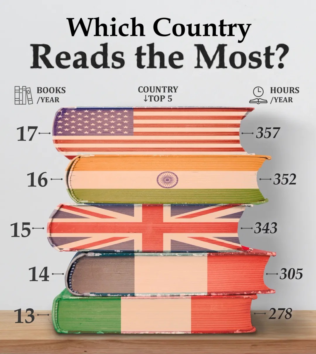 Энэтхэг – хоёрдугаар байрт орсон. Тэд америкчуудаас ердөө таван минутаар хоцорсон юм. Жилд 352 цаг ном уншдаг.