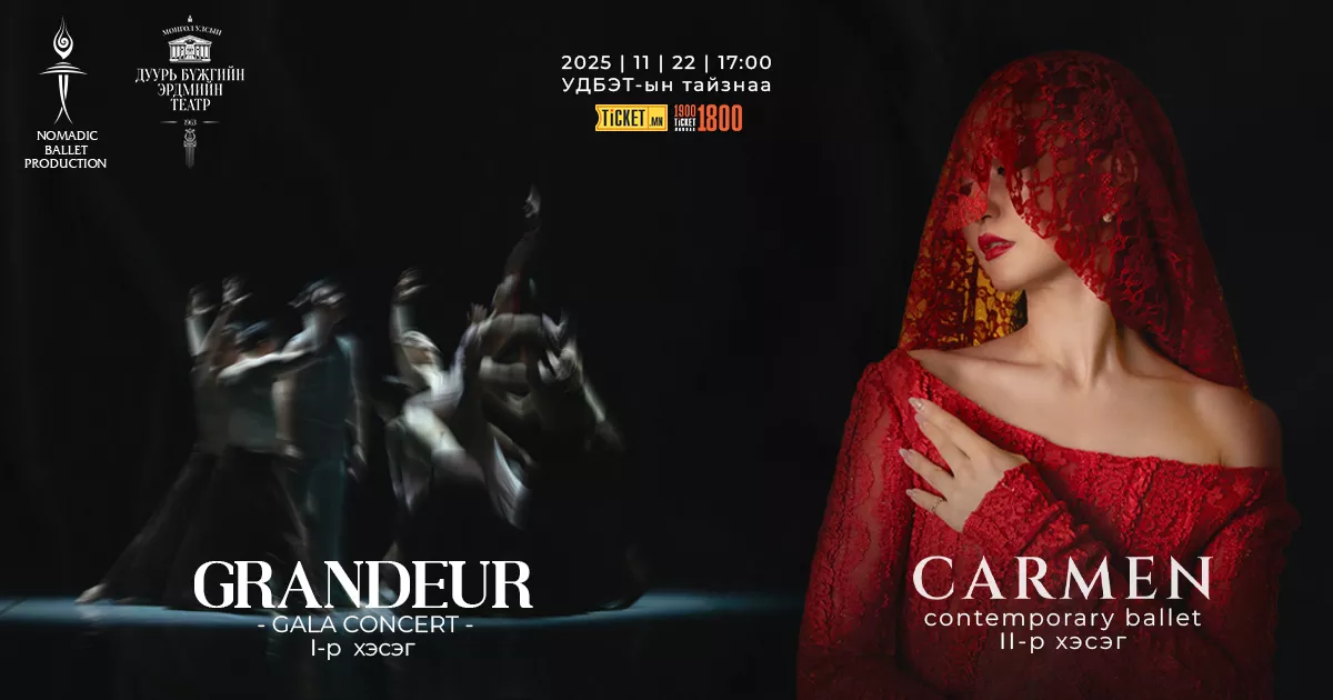 Суут хөгжмийн зохиолч Ж.Бизегийн “Кармен” дуурийг мэдэхгүй хүн цөөн биз ээ. “Номадик” балет продакшн 2024 онд уг дуурийн хөгжим дээр Монголд анх удаа бүрэн хэмжээний контемпарори балетийг толилуулж байв. Энэхүү контемпарори балет залуу уран бүтээлч Э.Эрдэнэтөгсийн хөгжмийн найруулга, Э.Эрдэнэжаргалын дэглэлтээр энэ жил дахин тайзнаа тоглогдох гэж байна.