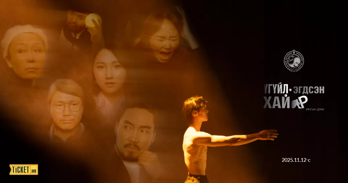 Улсын Драмын Эрдмийн театр 95 дахь үзвэрийн жил Ардын уран зохиолч Б.Лхагвасүрэнгийн “Үгүйлэгдсэн хайр” уянгын драмын жүжгээр эхлэлээ. Төрийн соёрхолт, УГЗ Н.Наранбаатарын найруулгаар шинэчлэн тавьж буй "Үгүйлэгдсэн хайр" жүжигт нийгмийн хөгжил, амьдралын эргүүлэгт хүн чанар, нинжин сэтгэлээ хадгалан үлдэхийг хичээж буй гэр бүлүүдийн тухай өгүүлнэ.