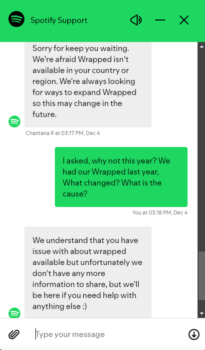 Spotify: Хүлээлгэсэндээ хүлцэл өчье. Энэ жил танай улс орон болон бүсчлэлд Wrapped гарах боломжгүй. Бид ирээдүйд хүрээгээ тэлэх боломжийг үргэлж хайж байгаа бөгөөд ирээдүйд өөрчлөгдөнө хэмээн найдаж байна.