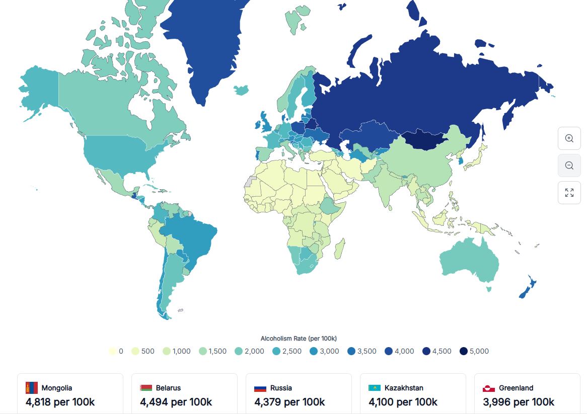 Эх сурвалж. Alcoholism by Country 2025 - World Population Review