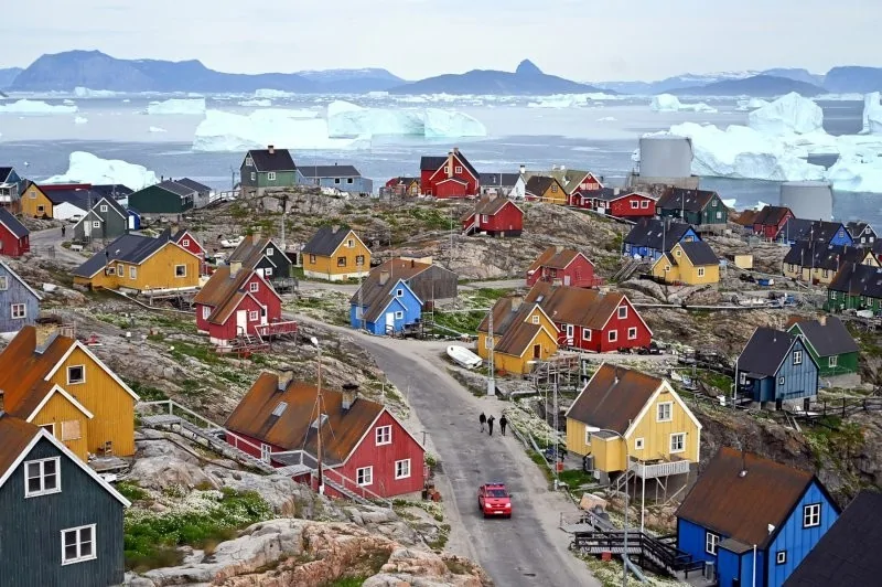 Гренланд бол 2 166 086 км² талбайтай хамгийн том арал. 56,7 мянган хүнтэй. Хүн амын 90 хувь нь эскимос (калааллит), үлдсэн нь дани болон бусад европчууд эзэлдэг. Хүн ам цөөхөн нь эдийн засагт нь нөлөөлдөг. Айлууд өөрсдөө талхаа хийчих тул талхны үйлдвэр хэрэггүй, хадаас үйлдвэрлэлээ ч 10 мянган гэр бүлийг бараг ганц өдөр л хангаж орхино. Тиймээс аж үйлдвэр, технологийн хувьд тэд Данийн далбаа дор амьдардаг. Дани улс эдийн засагт нь хөрөнгө оруулж, хүн амын 40 хувийг нь ажлаар хангадаг. Ажлын байр байлаа ч цөөхөн тооны залуус нь Европ, АНУ явахыг хүсдэг. Өөрсдөө үйлдвэрлэдэггүй тул барааны үнэ өндөр гэнэ.