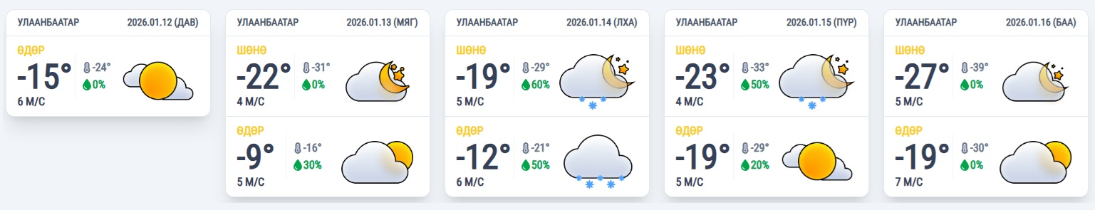 Нийслэл хотын 5 хоногийн урьдчилсан мэдээ: