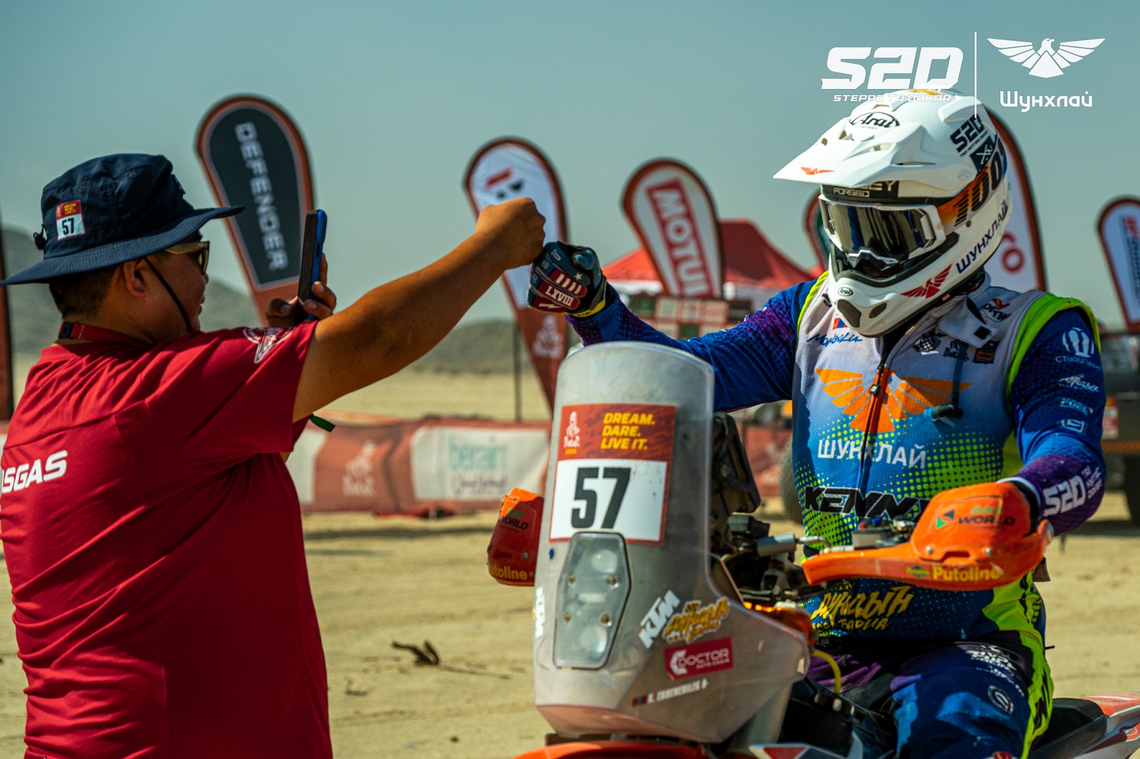 Мотоциклийн уралдаанд өнгөрсөн жилийн аварга Дэниел Сандерс 138 дахь км дээр осолд орж, зүүн мөрөө гэмтээлээ. Энэ хүнд хэцүү замын нөхцөл манай тамирчин Э.Халиунболдыг ч тойрсонгүй, тэрээр элсэн манхантай замд унаж, хэмнэлээ бага зэрэг алдсан ч эргээд уралдаанаа үргэлжлүүлж, амжилттай бариандаа орлоо. “Тал нутгаас Дакарт” төслийн тамирчин Э.Халиунболд 4 цаг 54 минут 25 секундээр нийт тамирчдаас 20, Ралли 2 төрөлдөө 11 дүгээр байрт орлоо. Харин ОУХМ П.Мөрөн 5 цаг 00 минут 44 секундээр нийт тамирчдаас 25, Ралли 2 төрөлдөө 16-р байрт орсон юм.