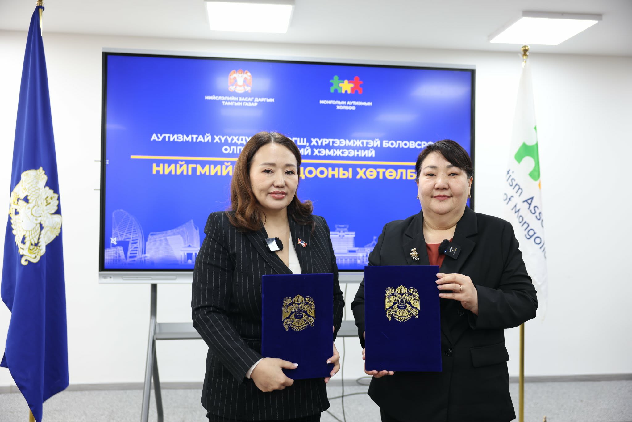 Хөгжлийн бэрхшээлтэй болон аутизмтай хүүхдэд тэгш, хүртээмжтэй боловсрол олгох олон улсын шилдэг туршлагад суурилсан нийгмийн оролцооны хөтөлбөрийг 2026-2030 онд хэрэгжүүлнэ. Энэ хүрээнд нийслэлийн Санхүү, эдийн засаг, хөгжлийн бүтээн байгуулалтыг эрчимжүүлэх төсөл, хөтөлбөрийн зохицуулагч Л.Хосбаяр Монголын аутизмын холбооны НҮТББ-ын зөвлөх Л.Алтангэрэл нар хамтын ажиллагааны санамж бичиг байгууллаа.
