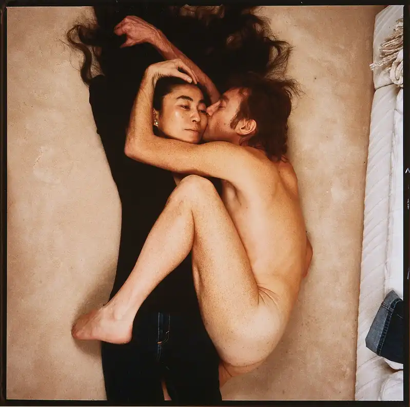 Лейбовиц анх 1968 онд гарсан “Unfinished Music No. 1: Two Virgins” цомгийн зургаас сэдэвлэсэн зураг дарахыг хүсэж байжээ. Гэвч Ёко хувцсаа тайлахаас татгалзаж доор харагдаж байгаа зургийг амилуулсан байдаг. Уг зураг нь онцгой хайр татам, дотно байдал, хосын гүн хайр сэтгэлийн бэлгэдэл бөгөөд тэдний хамтдаа даруулсан сүүлийн гэрэл зураг гэдгээрээ онцгой. Энэ зургийг даруулснаас хэдхэн цагийн дараа Жон буудуулж амиа алдсан юм.
