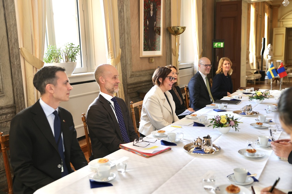 Гадаад харилцааны сайд Б.Батцэцэг, Шведийн Хаант Улсын Гадаад хэргийн сайд Мариа Малмер Стенергард нар албан ёсны хэлэлцээ хийлээ. Албан ёсны хэлэлцээний үеэр талууд дипломат харилцааны 60 гаруй жилийн түүхтэй Монгол, Шведийн харилцааг улам бүр өргөжүүлэх, хамтын ажиллагааг эдийн засаг, хөрөнгө оруулалтаар баяжуулах, мөн соёл, боловсрол, нийгмийн хамгаалал, аялал жуулчлал зэрэг салбарт эрчимжүүлэх өргөн боломж байгааг нотоллоо.