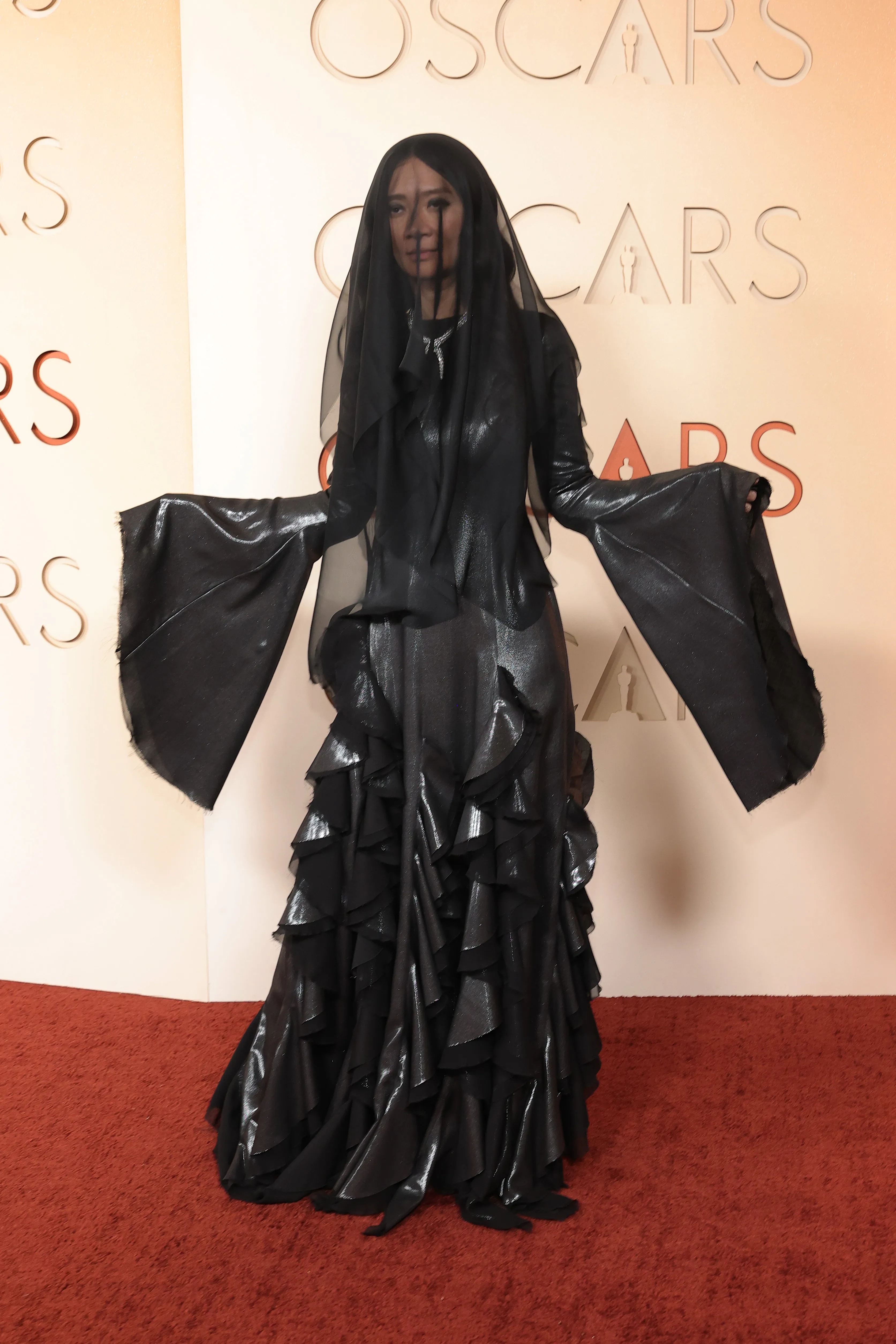 “Хамнет” киноны найруулагч Хлоя Чжао гашуудлын хар хувцастай гарч ирж, гэрэл зурагчдыг айлгалаа.