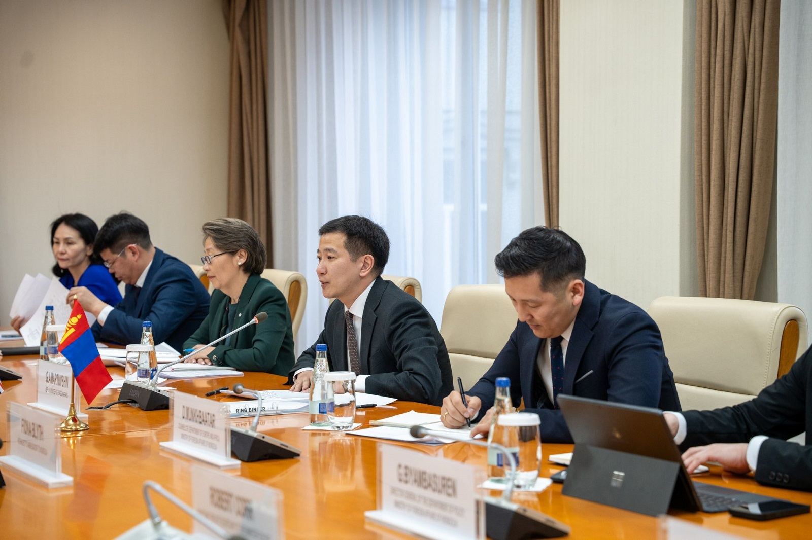 Дугуй ширээний уулзалтын үеэр уур амьсгалын өөрчлөлт, эрчим хүчний шилжилт, олон улсын хамтын нийгэмлэгийн анхаарлыг татаж буй бусад асуудлаар санал солилцож, Монгол Улсад ирэх 8 дугаар сард зохион байгуулагдах Цөлжилттэй тэмцэх тухай НҮБ-ын конвенцын талуудын 17 дугаар бага хурлыг (COP17) амжилттай зохион байгуулахад үргэлжлүүлэн хамтран ажиллахаа илэрхийлэв.