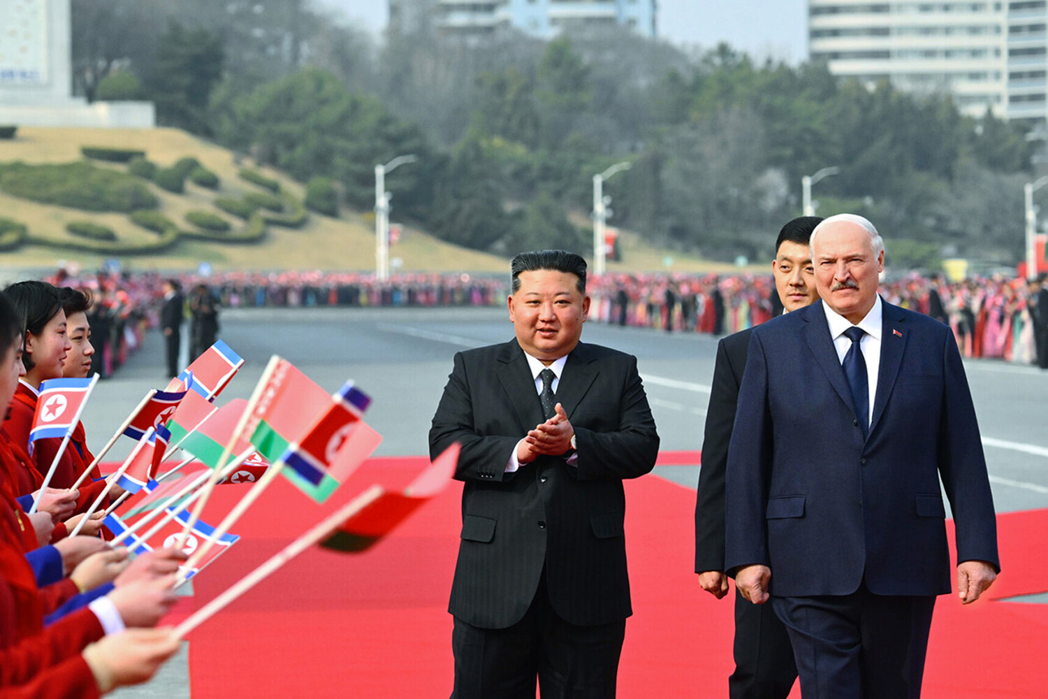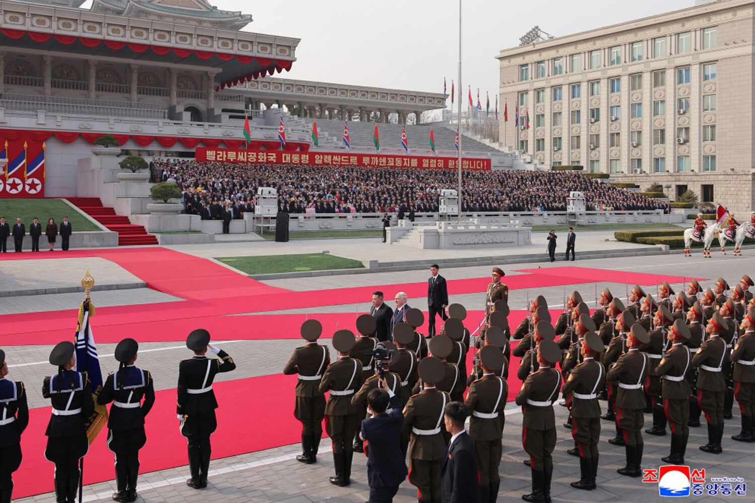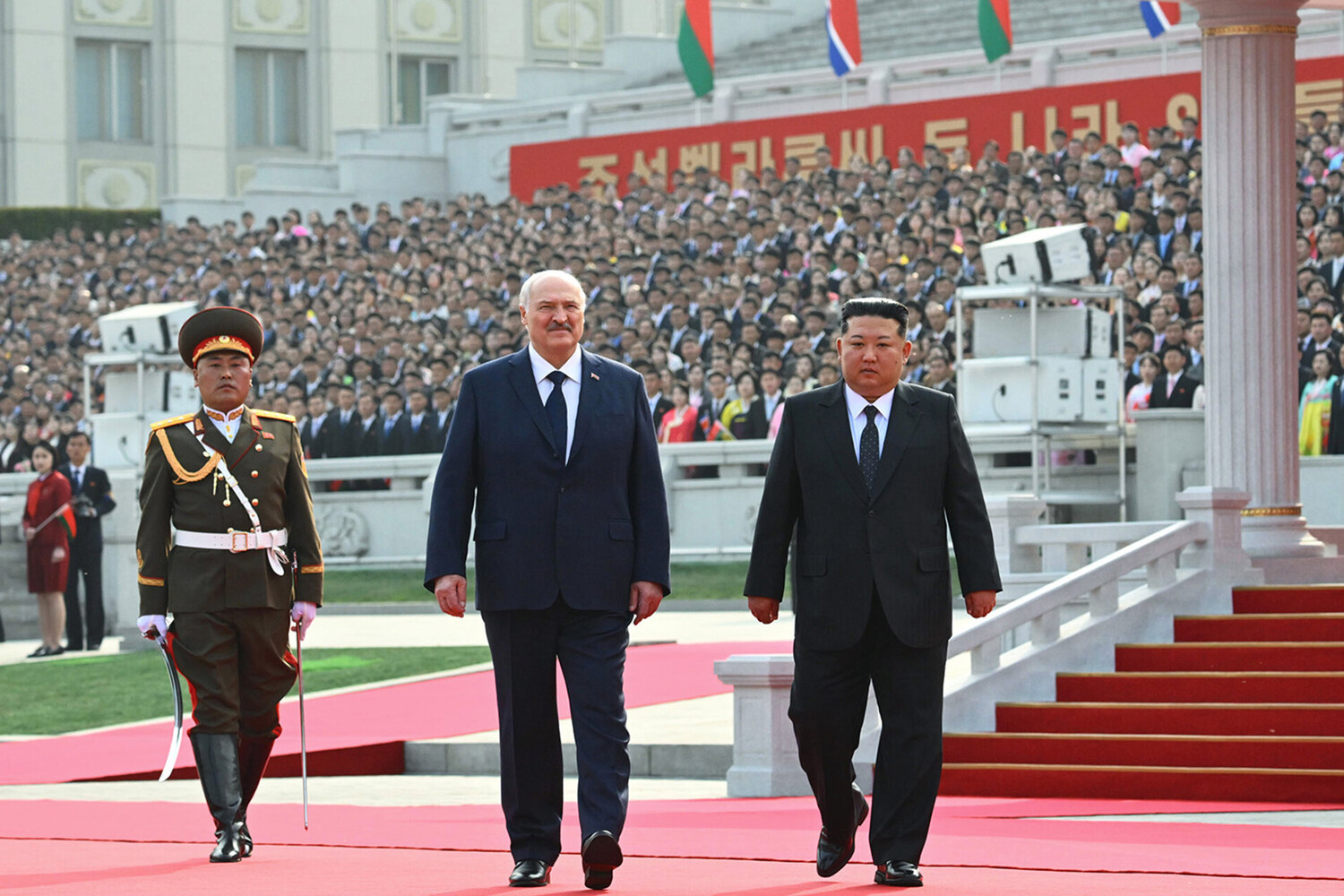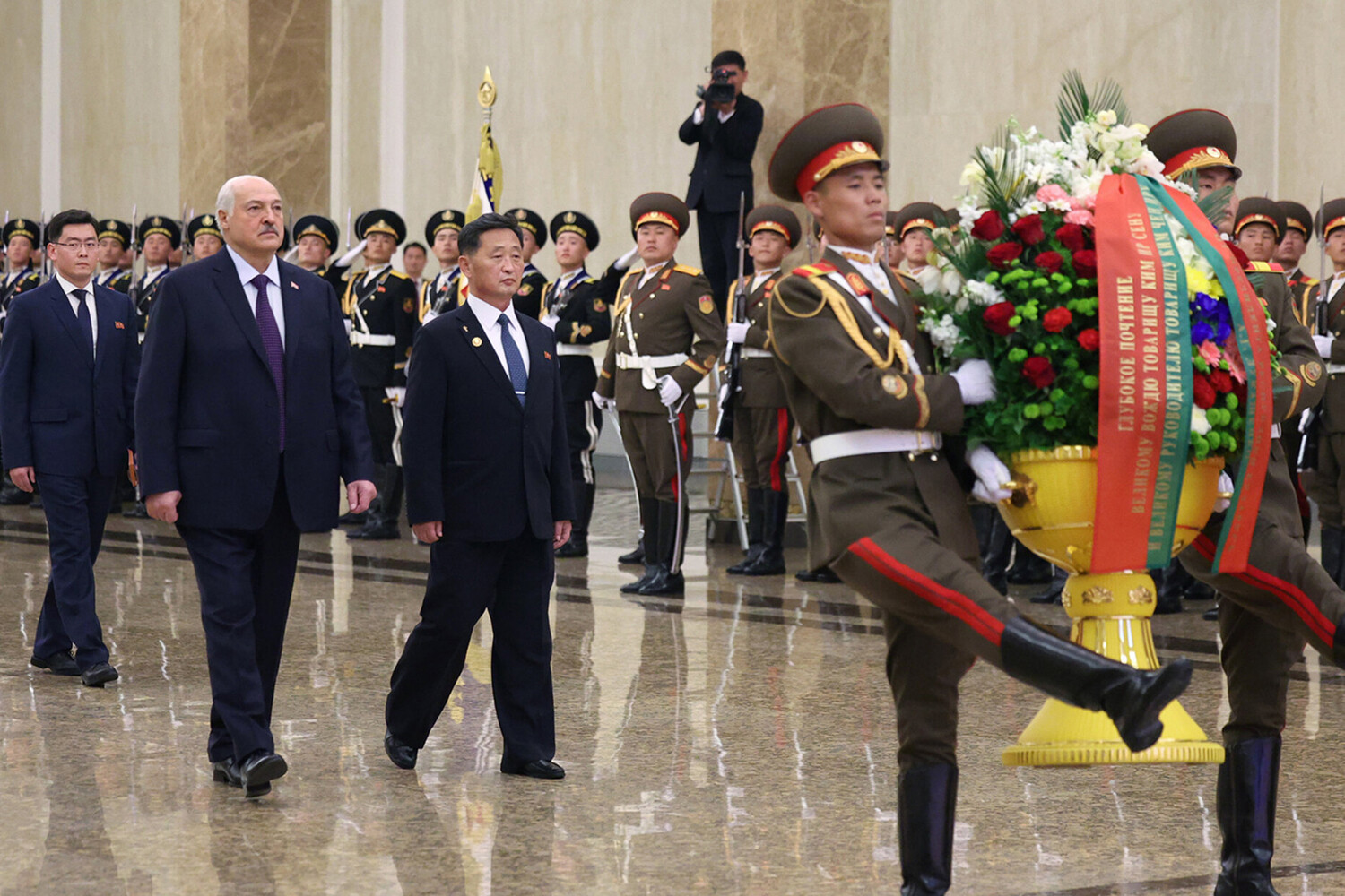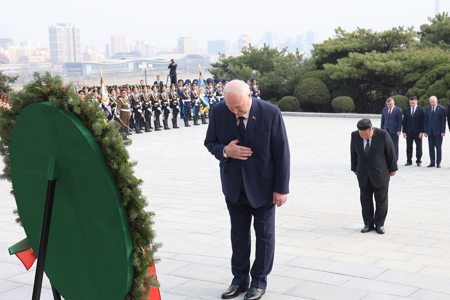 Лукашенко Хойд Солонгосын өмнөх удирдагчид болох Ким Ир Сен, Ким Чен Ир нарын бунханд очиж, хүндэтгэл үзүүллээ.