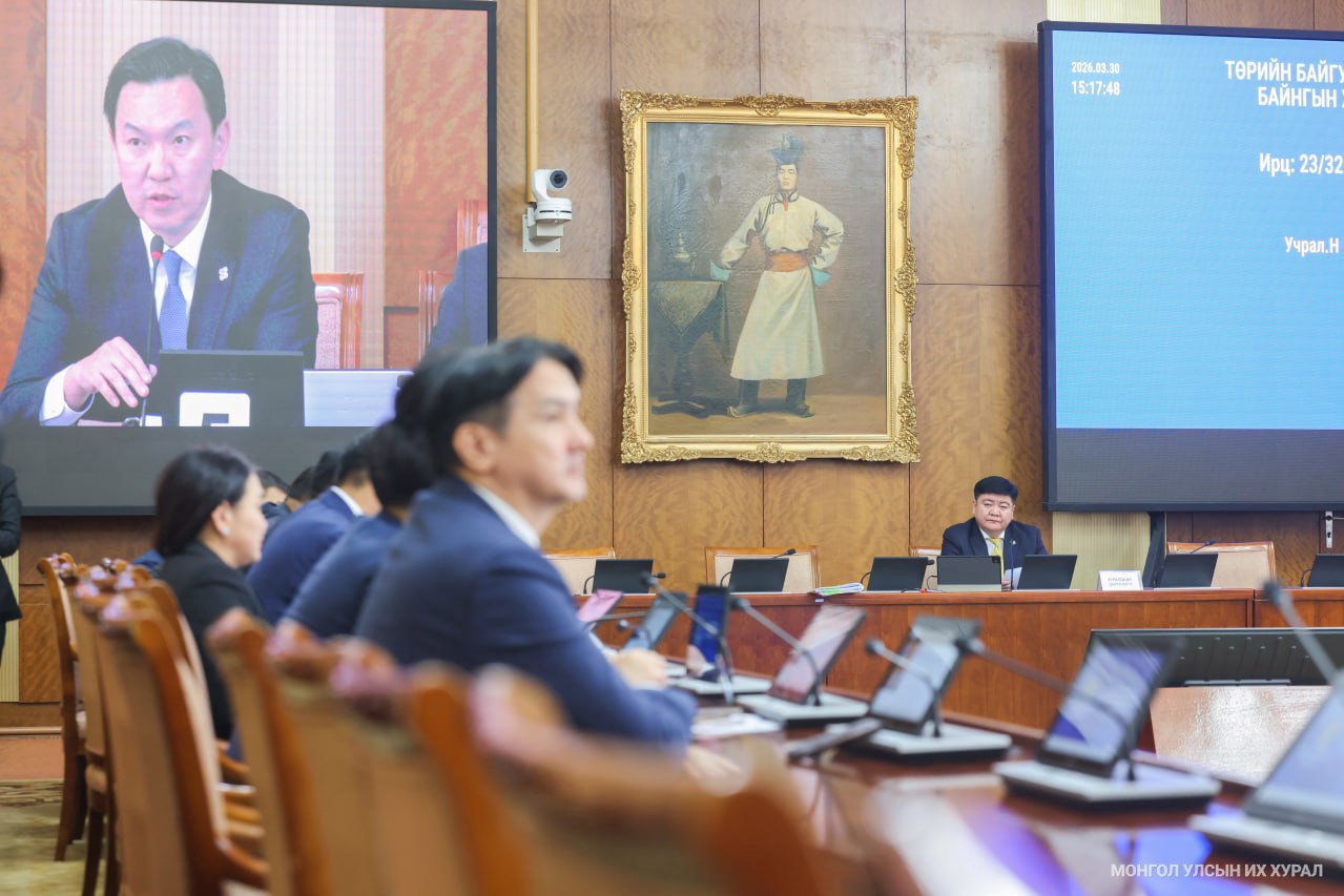 Улсын Их Хурлын Төрийн байгуулалтын байнгын хорооны өнөөдрийн (2026.03.30) хуралдаан 15 цаг 03 минутад ирвэл зохих Улсын Их Хурлын 32 гишүүний 21 нь хүрэлцэн ирснээр эхэллээ. Байнгын хорооны дарга Ц.Сандаг-Очир Монгол Улсын Их Хурлын чуулганы хуралдааны дэгийн тухай хуулийн 7 дугаар зүйлийн 7.8 дахь хэсэгт заасны дагуу хуралдааны ирцийг гишүүн бүрийн нэрээр танилцуулав. Улсын Их Хурлын гишүүн А.Ариунзаяа, Ж.Бат-Эрдэнэ, Б.Батбаатар, Ж.Батжаргал, Э.Болормаа, А.Ганбаатар, Л.Гантөмөр, Т.Доржханд, С.Зулпхар, Ц.Идэрбат, Ч.Лодойсамбуу, Ч.Номин, Н.Номтойбаяр, Э.Одбаяр, Ц.Сандаг-Очир, Ц.Туваан, Н.Учрал, Б.Хэрлэн, Ө.Шижир, Л.Энх-Амгалан, Д.Энхтуяа нар хүрэлцэн ирсэн юм.