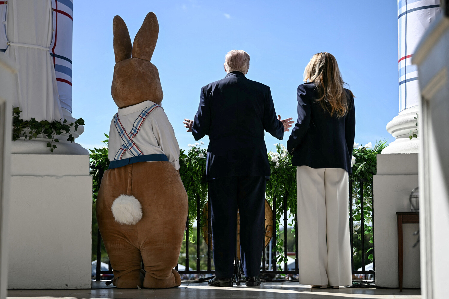 АНУ-ын Ерөнхийлөгч Дональд Трамп, Тэргүүн хатагтай Мелания Трамп нар Улаан өндөгний баяраар Цагаан Ордонд. Brendan Smialowski/Reuters