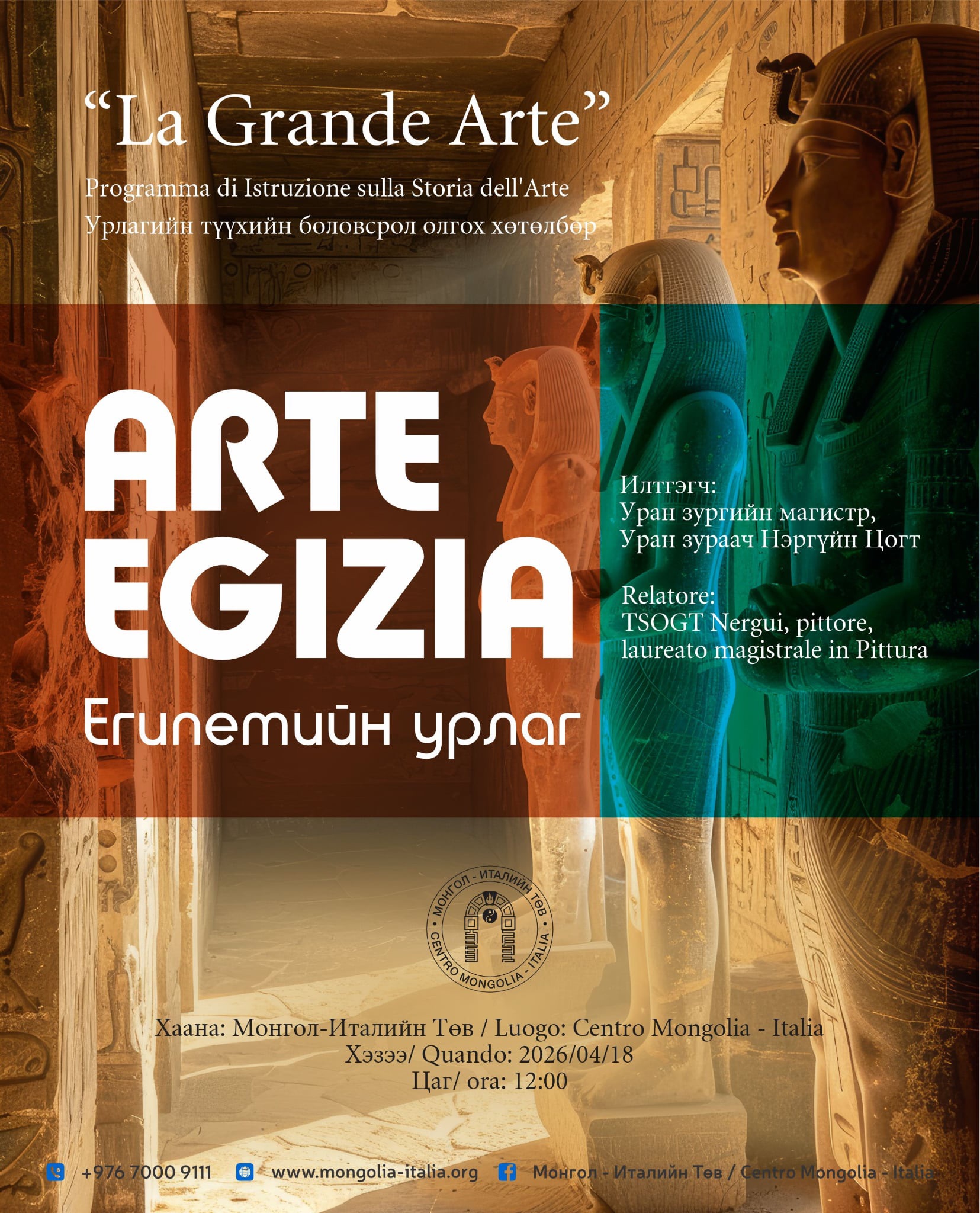 Энэ удаагийн сургалт "Arte Egizia" буюу "Египетийн урлаг" сэдвийн дагуу зохион байгуулагдана.