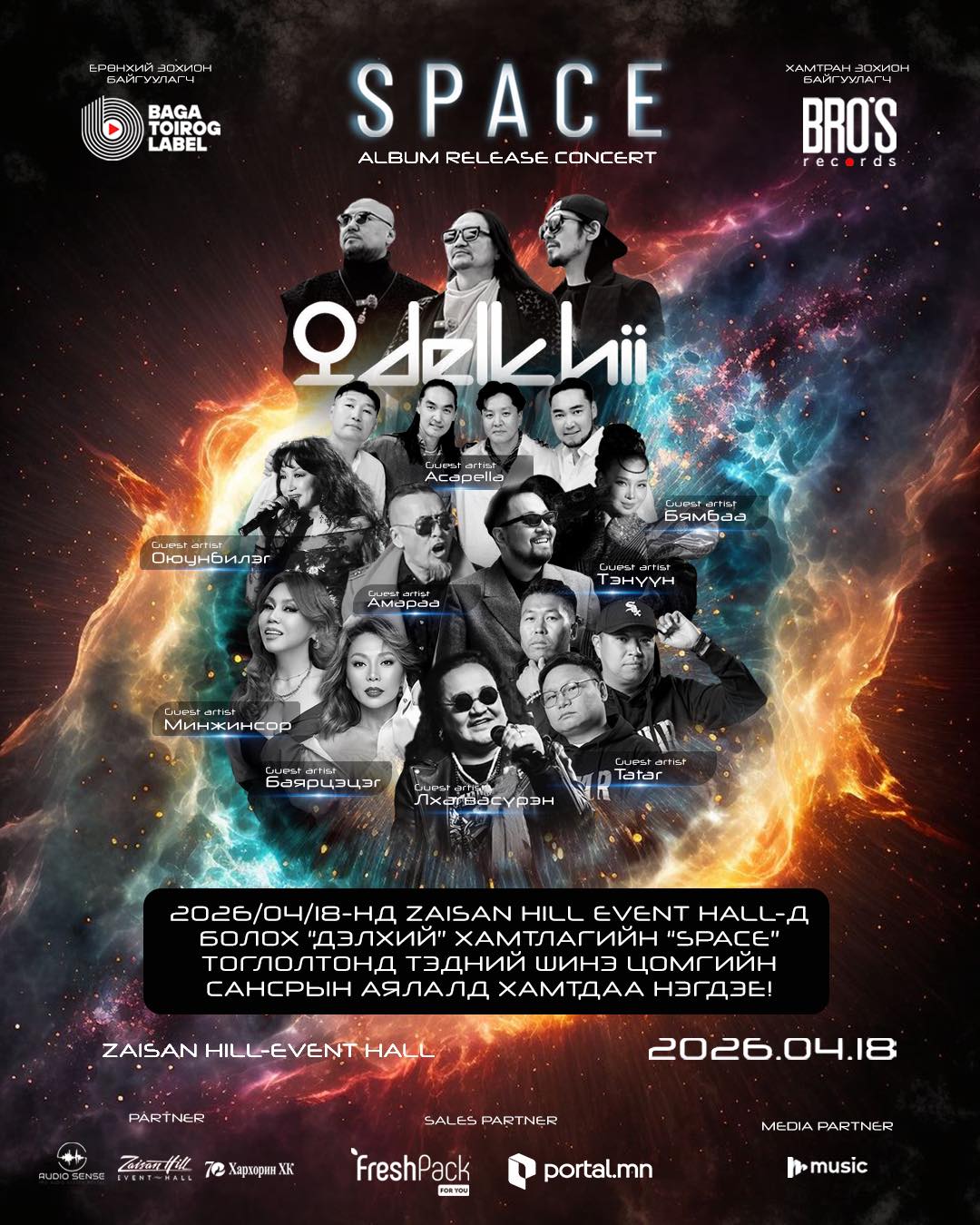 Delkhii хамтлаг бүрэн бүрэлдэхүүнээрээ цомог бүрийн шилдэг уран бүтээлүүд болон шинээр гаргаж буй “SPACE” цомгийн бүтээлүүдээс бүрдсэн нийт 35 гаруй уран бүтээлийг Baga Toirog-ын залуустай хамтран амьд хөгжмийн тоглолтыг үзэгч та бүхэндээ хүргэхээр төлөвлөжээ.