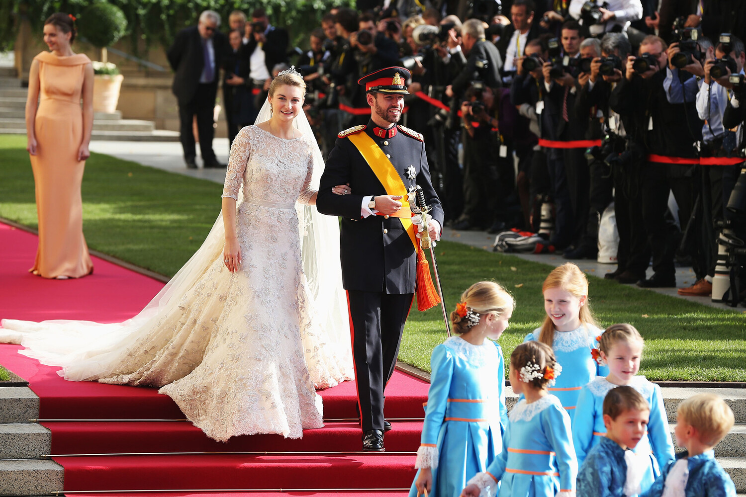 Тэр үед хаан ширээ залгамжлагч байсан Гийом хоёр хоног тэмдэглэсэн. Эхний өдөр иргэний ёслол хийж, маргааш нь сүмд очсон. Стефания де Ланнуа бол Бельгийн сурвалжит гэр бүлээс гаралтай бүсгүй. Хурим хийхийн тулд иргэншлээ сольж байв. Энэ үеэр Норвегийн гүнж Метте-Марит АНУ-ын санхүүч Эпштинд “Их уйтгартай байна” гэж бичиж байсан нь Эпштиний файлаас ил болсон.