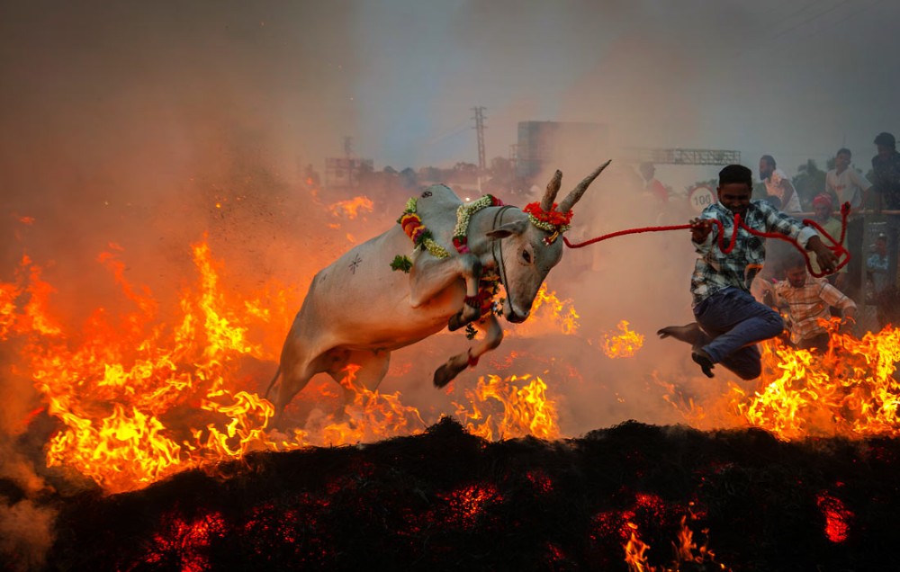 Мьянмарын Үндэсний баяраар инта омгийн эрчүүд хөлөөр сэлүүрдэх техник сонирхуулж байна. Thein Zaw/AP