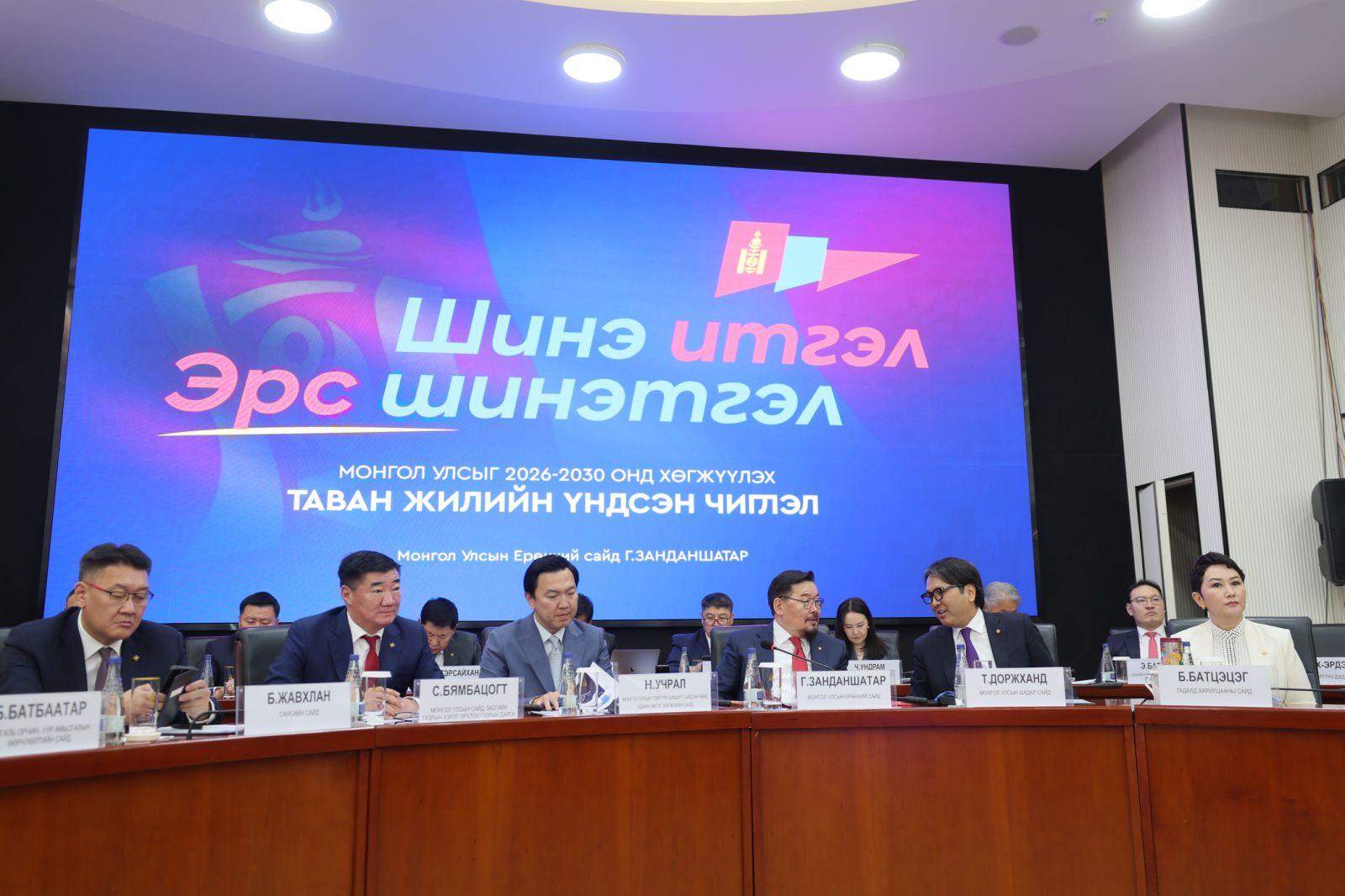 Монгол Улсыг хөгжүүлэх таван жилийн үндсэн чиглэлийн төслийг ШУА болон эрдэм шинжилгээний байгууллагууд, их сургуулиудын эрдэмтэн судлаачдаар хэлэлцүүлэн боловсруулжээ. Хөгжлийн бодлого, төлөвлөлтийн тухай хуулийг 2020 онд баталснаар анх удаа Монгол Улсын хөгжлүүлэх таван жилийн үндсэн чиглэлийг баталсан. Өмнөх үндсэн чиглэлийн баримт бичиг дуусгавар болохоос хоёр сарын өмнө дараагийн таван жилийн үндсэн чиглэлийг Улсын Их Хуралд өргөн мэдүүлэхээр хуульчилсны дагуу “Монгол Улсыг 2026-2030 онд хөгжүүлэх таван жилийн үндсэн чиглэл”-ийн төслийг боловсруулан парламентад өргөн бариад буй юм.