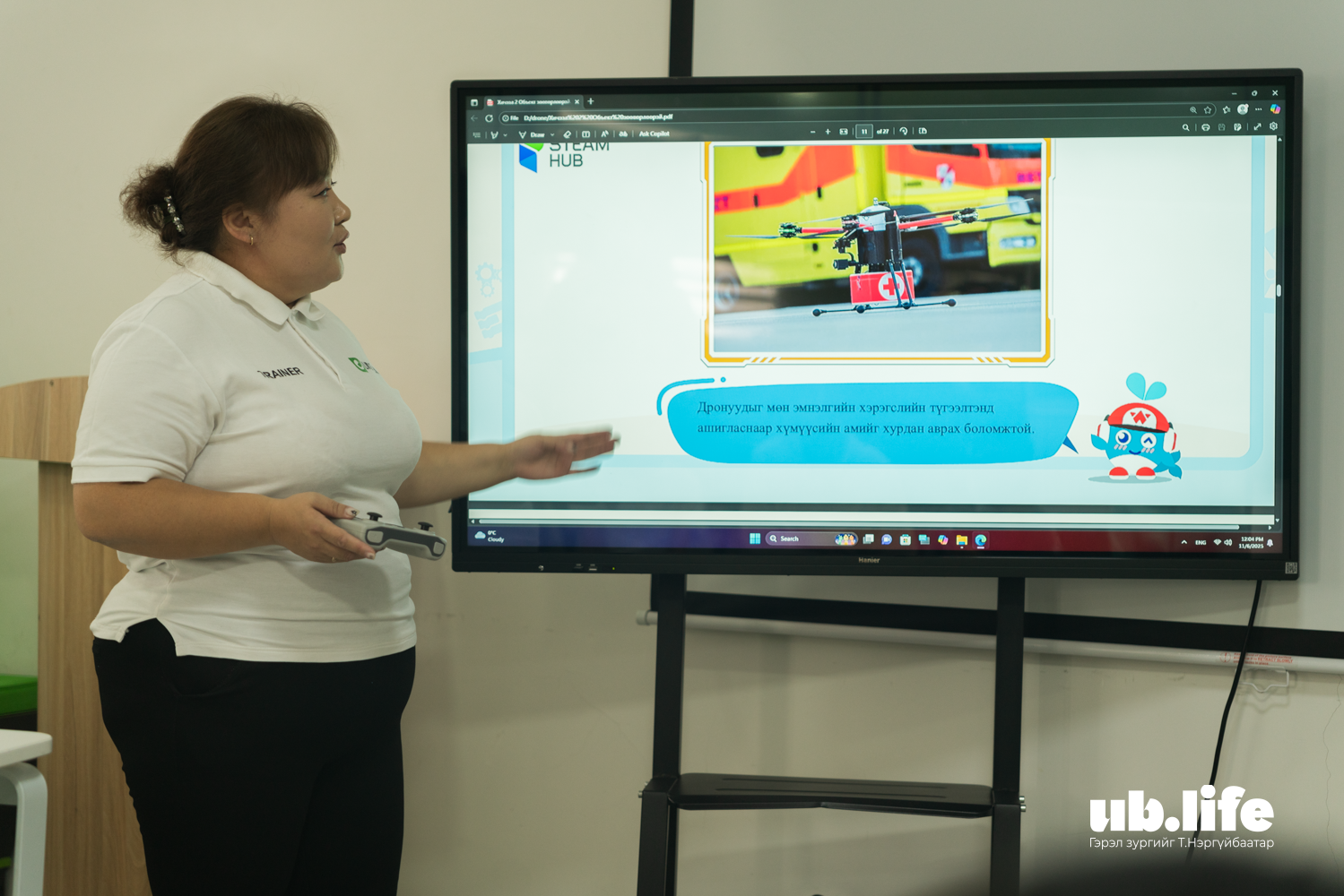 Манай багийн хамтрагчийг Сүлдээ гэдэг. Бид хоёр дрон хөөргөх тэмцээнд аравдугаар сарын 20-нд ороод 8-р байран эзэлсэн. Бид нарт ийм гоё сургалтыг байгуулж өгсөн ах эгч нартаа маш их баярлалаа. Гоё зүйл зааж өгч байгаа багшдаа баярлалаа.