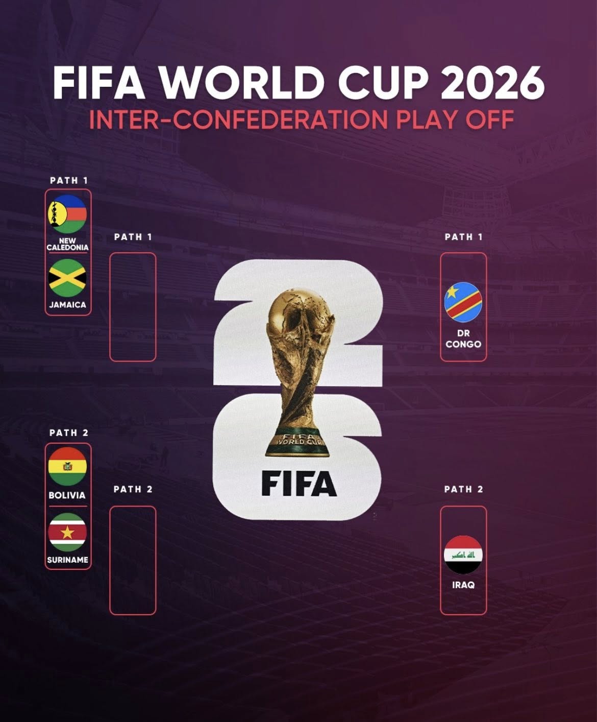 Плэй-офф дундын талбайд "галзуу ганц" тоглолтоор шийдэгдэх бөгөөд 2026 оны гуравдугаар сарын 23 болон 31-нд Мексикийн Гвадалахара, Монтеррей хотуудад болох юм.