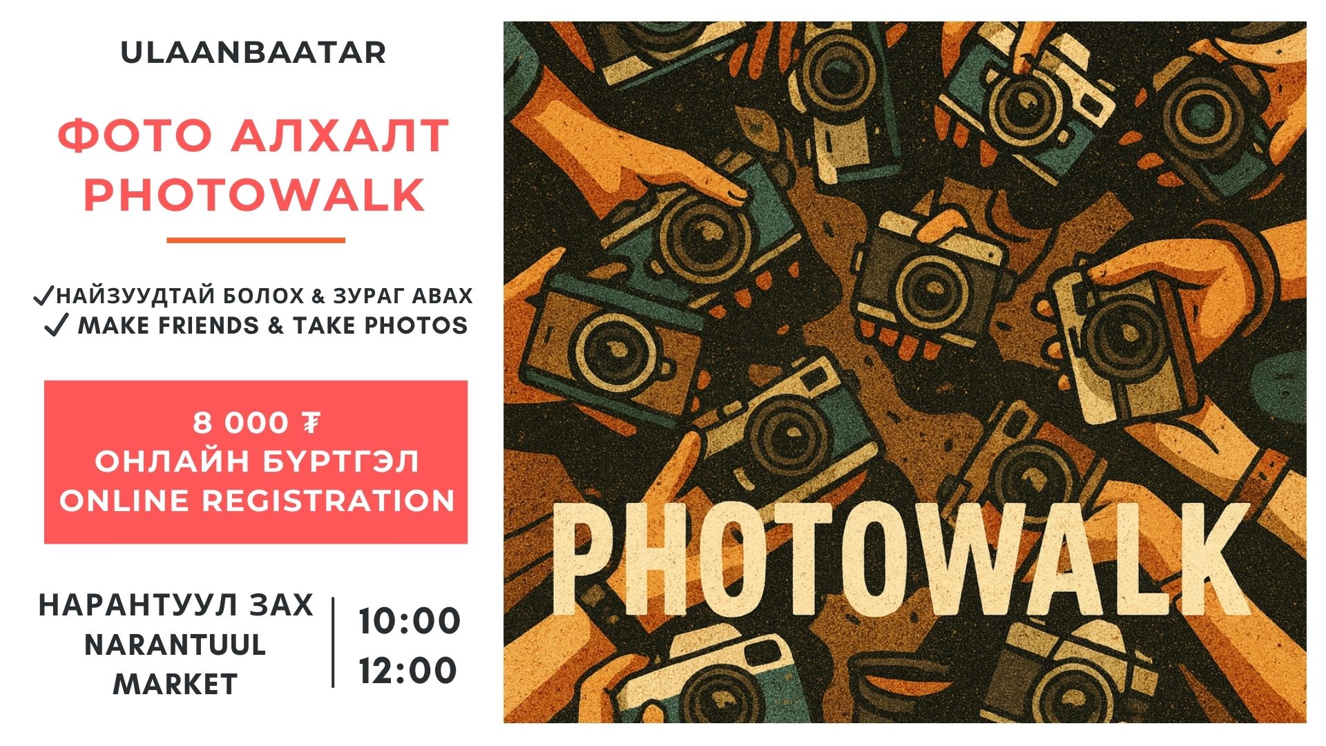 Улаанбаатар хотынхоо гудамж, талбайгаар зугаалж, харж мэдэрснээ гэрэл зургийн хальснаа буулгаж, шинэ найзуудтай болж, дурсамж бүтээх нэг өдрийн фото алхалт.