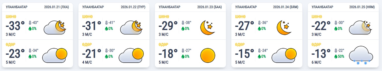 * Танд ойрын өдрүүдийн Улаанбаатар хотын цаг агаарын урьдчилсан мэдээг хүргэж байна. Уншигч та бүхэн дулаан хувцаслаарай, малгайгаа заавал өмсөөрэй ^^