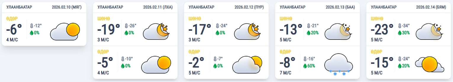 Нийслэл хотын цаг агаарын 5 хоногийн урьдчилсан мэдээ: