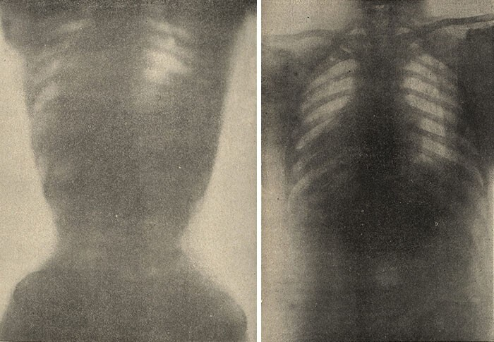 1908 он, корсет зүүдэг болон зүүдэггүй эмэгтэйн бүсэлхийн рентген зураг.