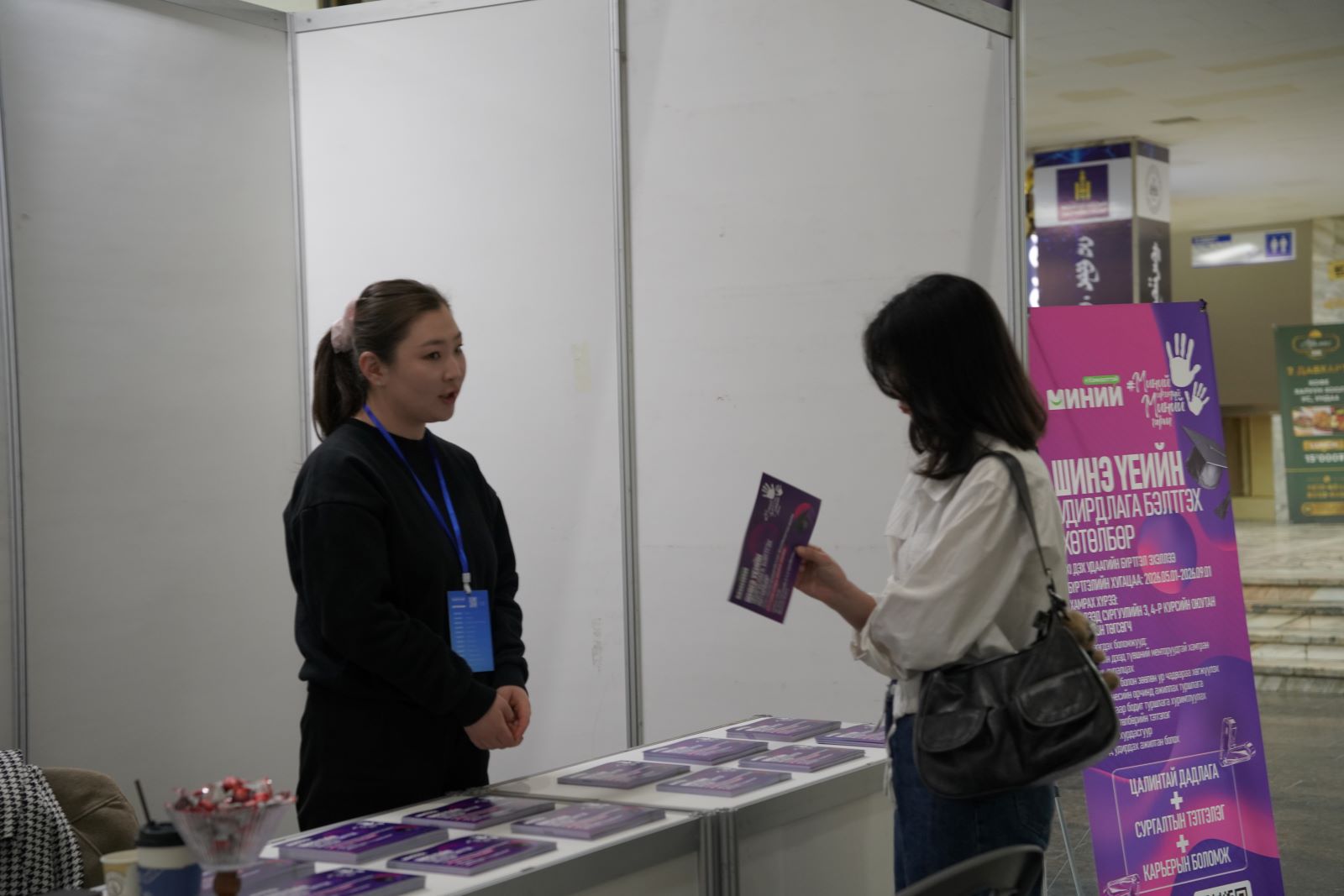 Өдөрлөгийн үеэр 40 гаруй аж ахуйн нэгж, компани оюутан залууст ажлын байраа танилцуулж, өөрсдийн давуу тал, цаашид хөгжих боломжийг харуулсан зурагт хуудас, үзэсгэлэн гаргасан байлаа.