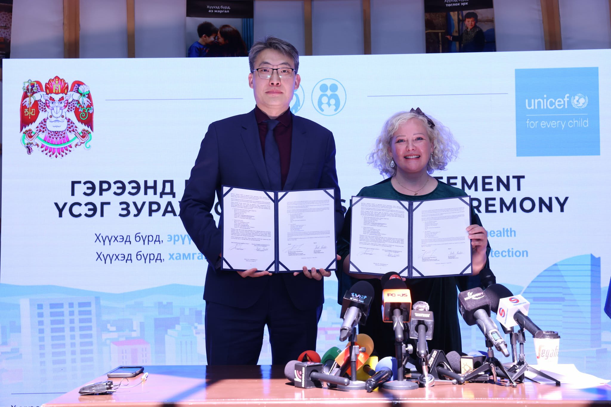 Мэдээллийн төгсгөлд нийслэлийн Засаг даргын орлогч А.Амартүвшин Монгол дахь НҮБ-ын Хүүхдийн сангийн Суурин төлөөлөгч Биате Дастелтай хамтран ажиллах санамж бичигт гарын үсэг зурлаа. Уг санамж бичгийн хүрээнд талууд хүн амын тэр дундаа хүүхдүүдийн эрүүл мэнд, хүүхэд хамгааллын чиглэлээр тогтвортой хамтран ажиллахаар боллоо гэж НЗДТГ-ын Хэвлэл мэдээлэл, олон нийттэй харилцах хэлтсээс мэдээллээ.