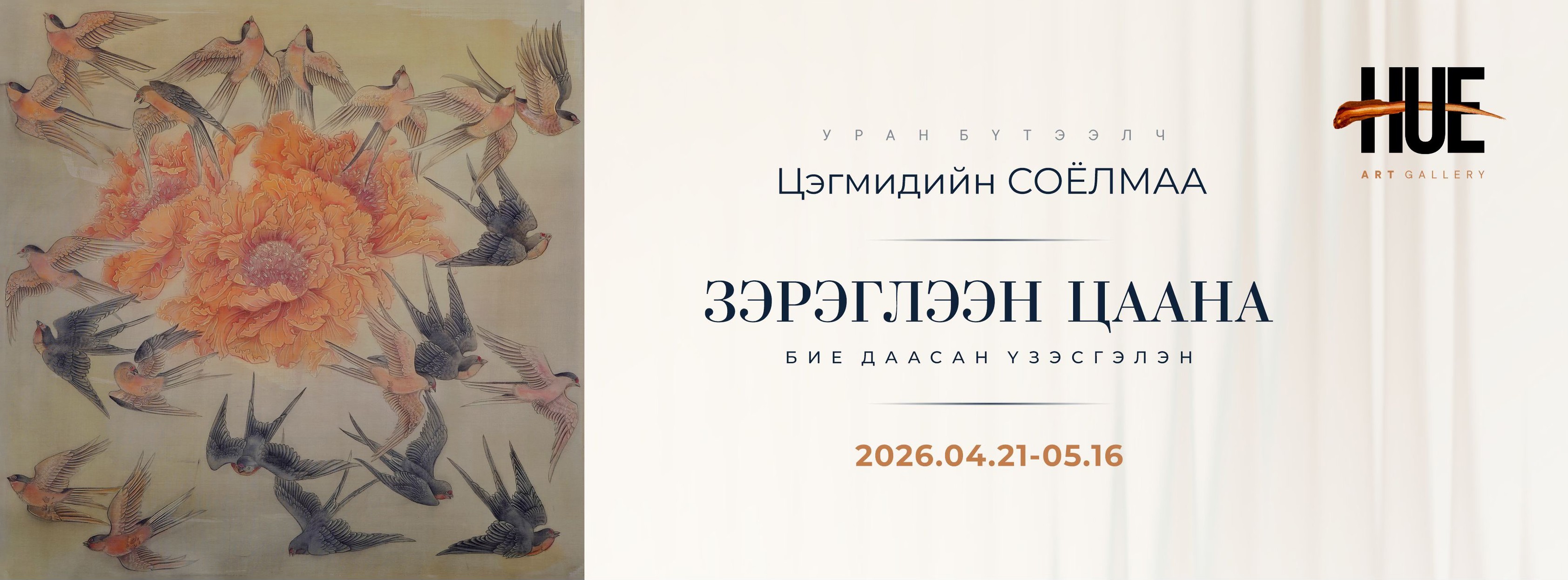 Хугацаа: Дөрөвдүгээр сарын 30-ныг хүртэл ажлын өдрүүдэд 10:00–18:00 цагийн хооронд