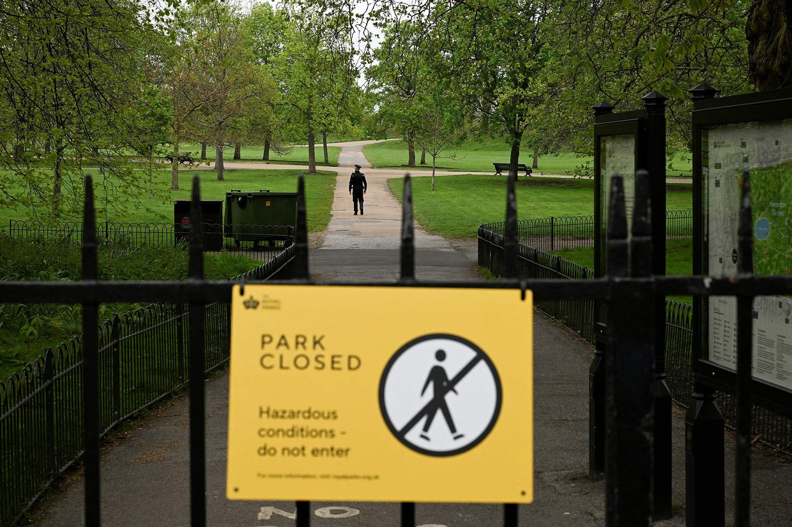 Лондон хотын Кенсингтон-Гарденс цэцэрлэгт хүрээлэнд дроны цохилт өгнө гэсэн мэдээллийн дараа хүрээлэнг хаажээ. REUTERS/Chris J Ratcliffe