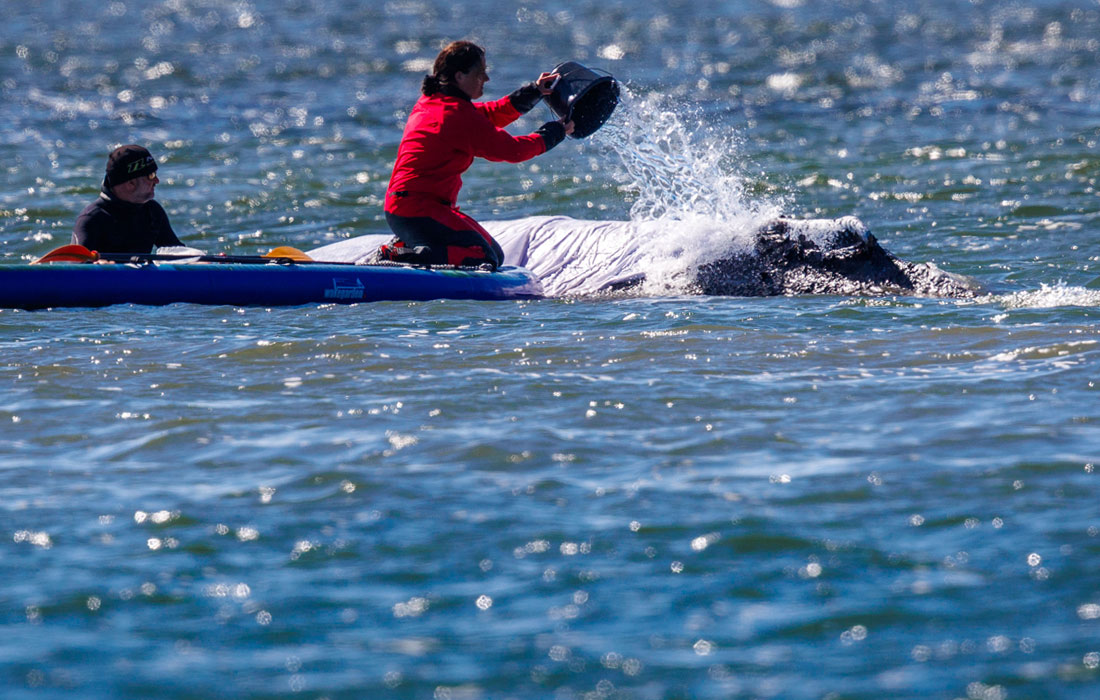 Балтын тэнгисийн гүехэн газарт хайргадсан халимыг аврахаар сайн дурынхан ажиллаж байна. Jens Buttner/picture alliance via Getty Images