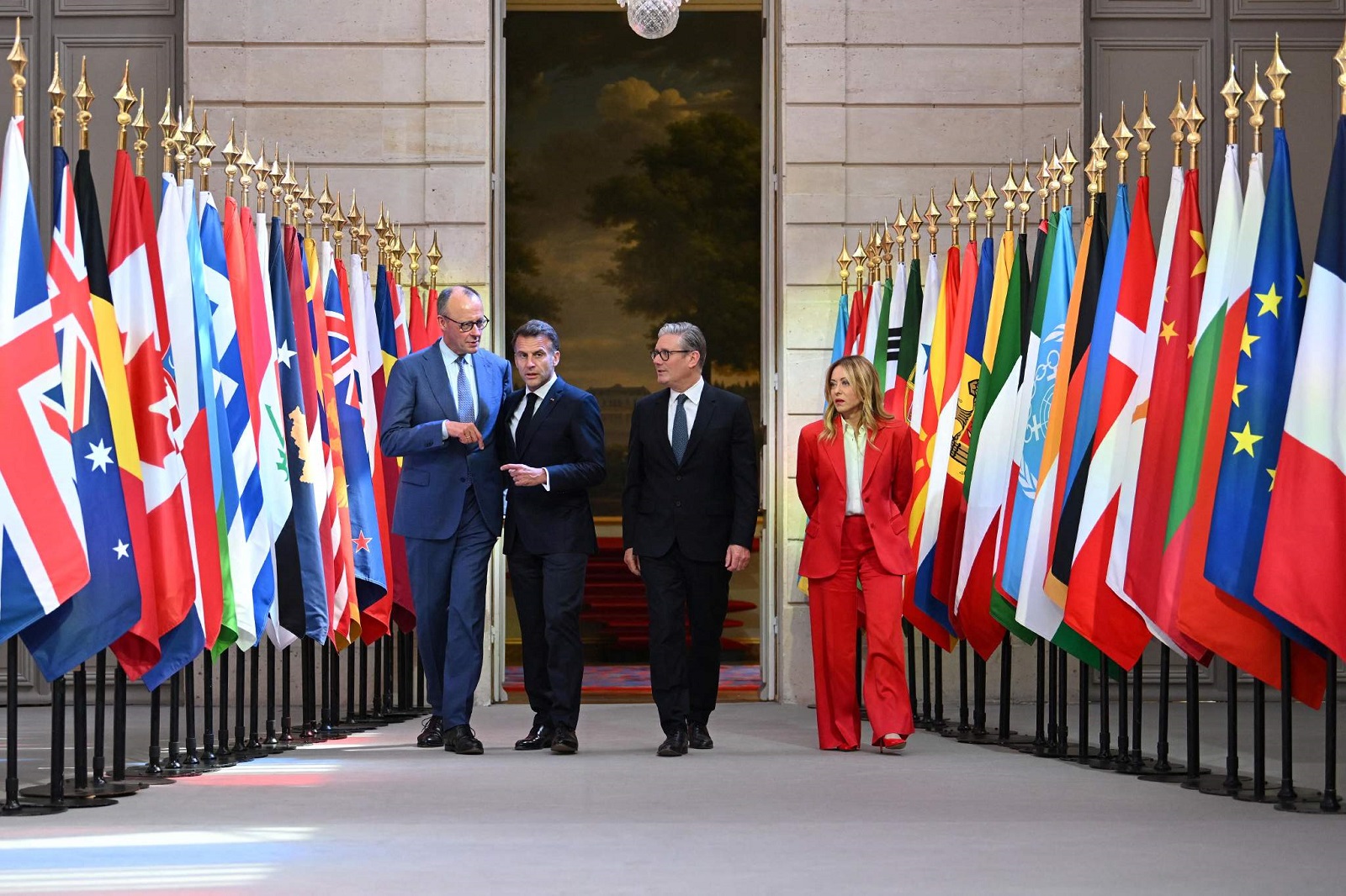 Францын Ерөнхийлөгч Эммануэль Макрон, Их Британийн Ерөнхий сайд Кир Стармер, Германы канцлер Фридрих Мерц, Италийн Ерөнхий сайд Жоржия Мелони нар Ормузын хоолойн байдлыг хэлэлцэхээр цугларлаа. REUTERS/Jeanne Accorsini/Pool