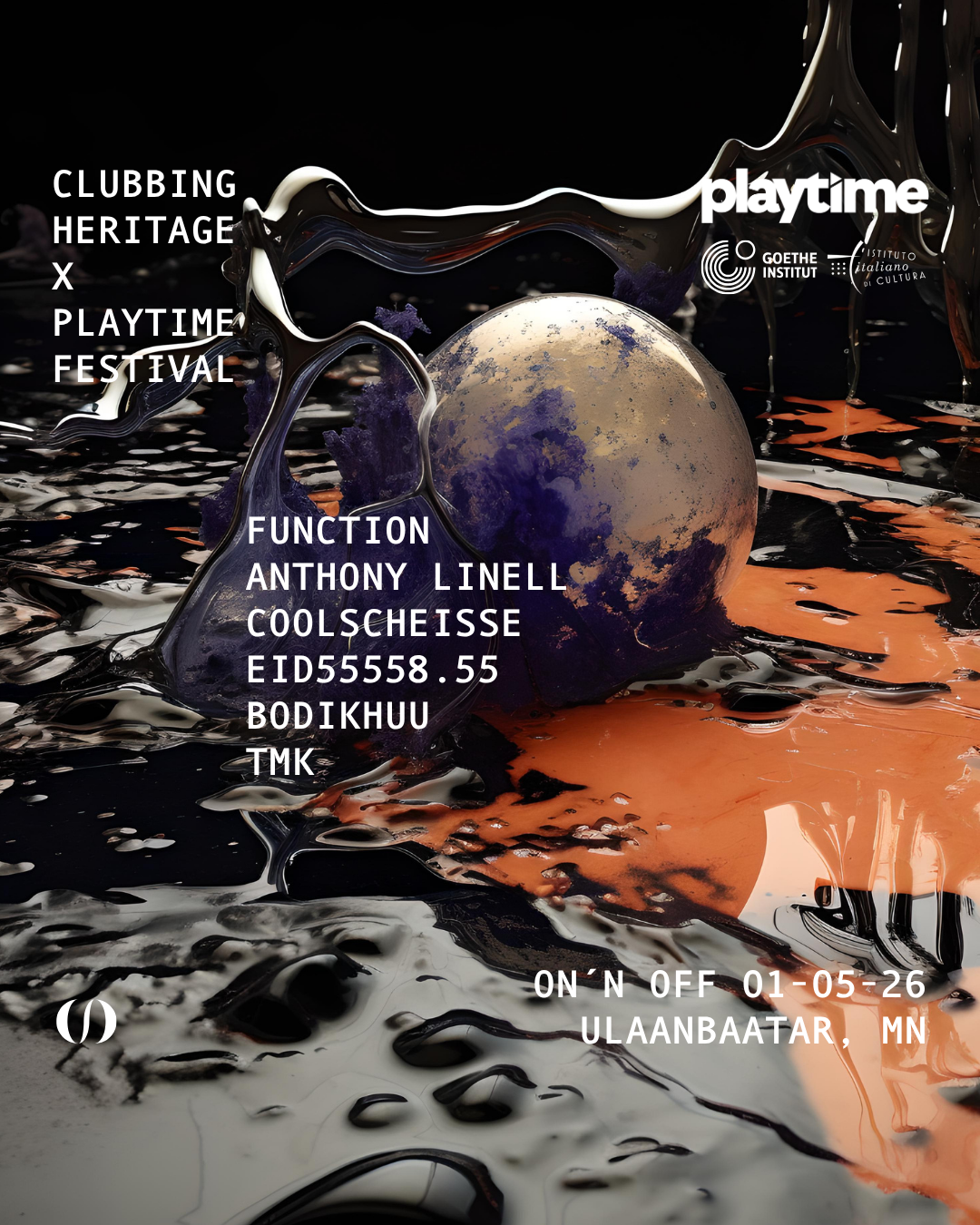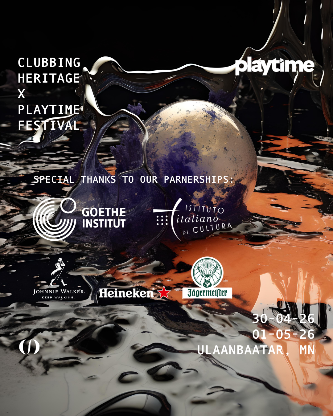 Электроник хөгжмийн соёл, клубын орчныг шинэ өнцгөөс харуулах Clubbing Heritage олон улсын цуврал арга хэмжээ энэ жил анх удаа Улаанбаатар хотод зохион байгуулагдах гэж байна. Тус эвент нь Playtime Festival-тай хамтран, Goethe-Institut болон Italian Cultural Institute Beijing-ийн дэмжлэгтэйгээр 4-р сарын 30, 5-р сарын 1-нд болох юм.
